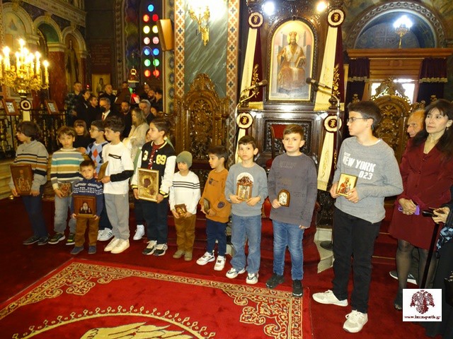 Ακολούθησε, εντός του ιερού ναού, κατά την εκκλησιαστική τάξη, η λιτάνευση των ιερών εικόνων, σε ανάμνηση της αναστηλώσεώς τους το έτος 843, ενώ ο θεοφιλέστατος ανέγνωσε το Συνοδικό της Ορθοδοξίας.