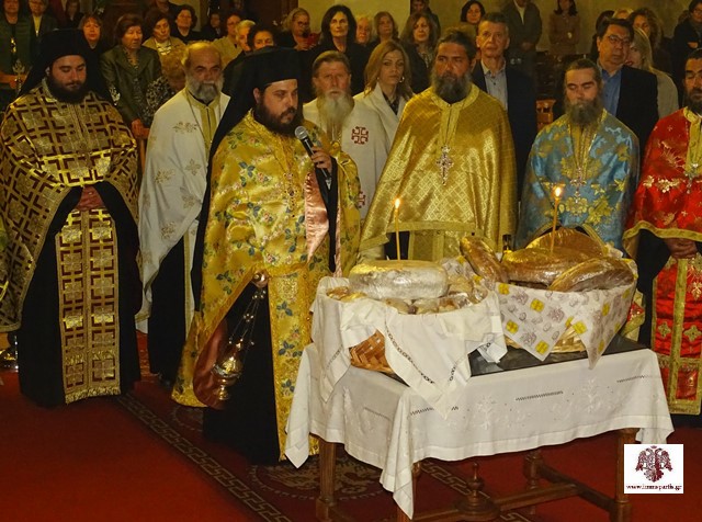 Μετά την ευλόγηση των άρτων, ο σεβ. Μητροπολίτης παρουσίασε στο εκκλησίασμα τον Επίσκοπο Τανάγρας, τον οποίο γνωρίζει από την εφηβική του ηλικία. Ο σεπτός Ποιμενάρχης τον χαρακτήρισε λαμπρό κληρικό με βαθιά πίστη, άριστο εκπαιδευτικό και θεολόγο, πολύγλωσσο, με κομβικό ρόλο στην Εκκλησία της Ελλάδος, αφού είναι Διευθυντής της αντιπροσωπείας Της στις Βρυξέλλες. Παράλληλα, ο σεβασμιώτατος ευχαρίστησε για την παρουσία του και τον Διευθυντή του Ραδιοφωνικού Σταθμού της Εκκλησίας της Ελλάδος κ. Αλέξανδρο Κατσιάρα, όπως και όσους ακόμα συνόδευσαν τον Επίσκοπο Τανάγρας.