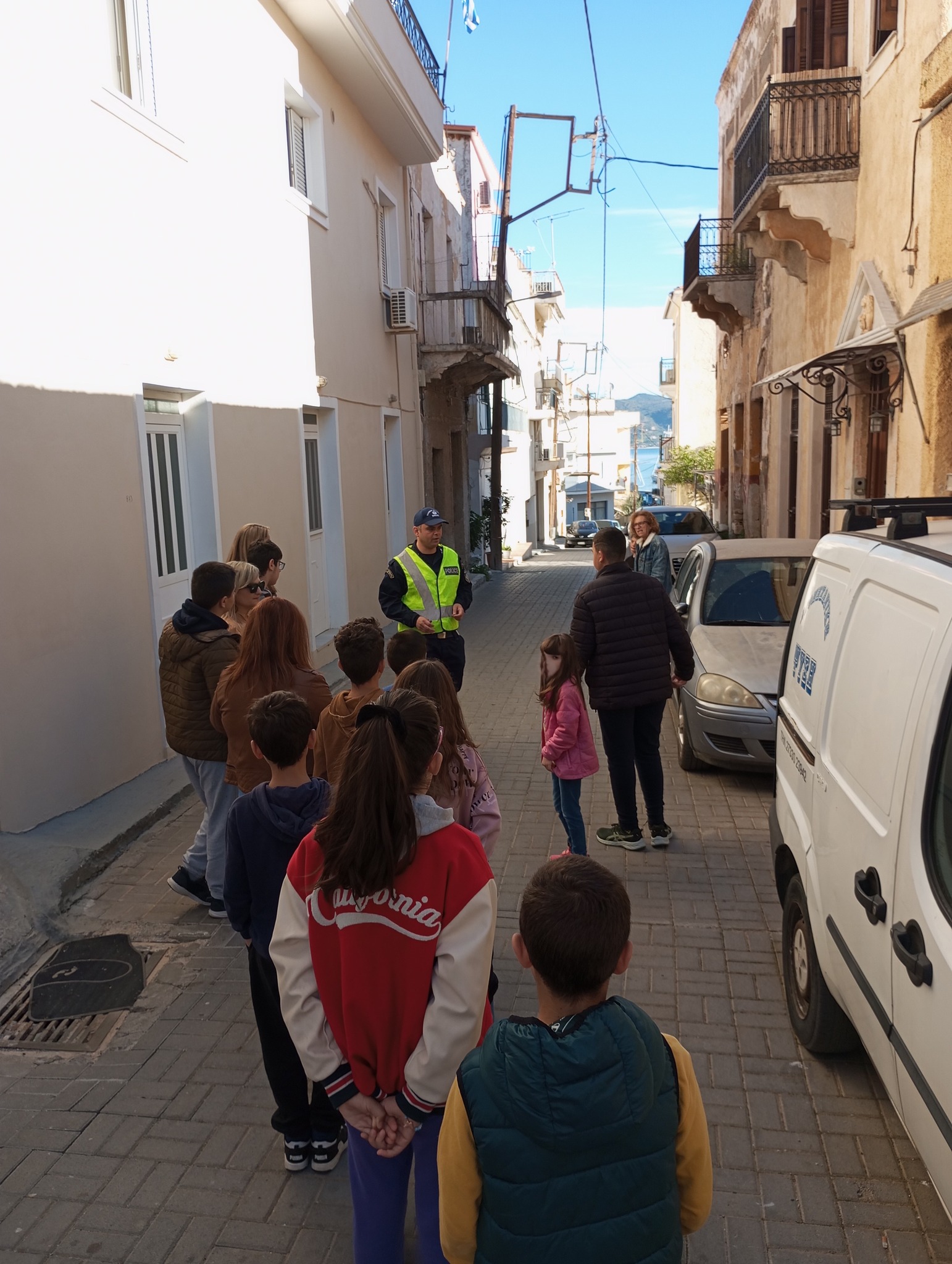 Επιπλέον, στα πλαίσια της δράσης και με τη βοήθεια του Διοικητή του οικείου Αστυνομικού Τμήματος, κ. Γιώργο Βασιλάκο, οι μαθητές περπάτησαν σε δρόμους του Γυθείου, παρέα με την Δ΄ Τάξη του 1ου Δημοτικού Σχολείου.