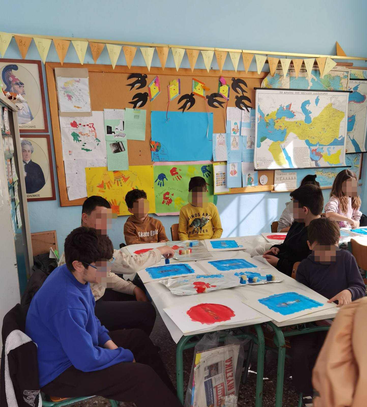 Ακόμα, με την εικαστικό των δύο σχολείων, οι μαθητές κατασκεύασαν τα δικά τους σήματα οδικής κυκλοφορίας.