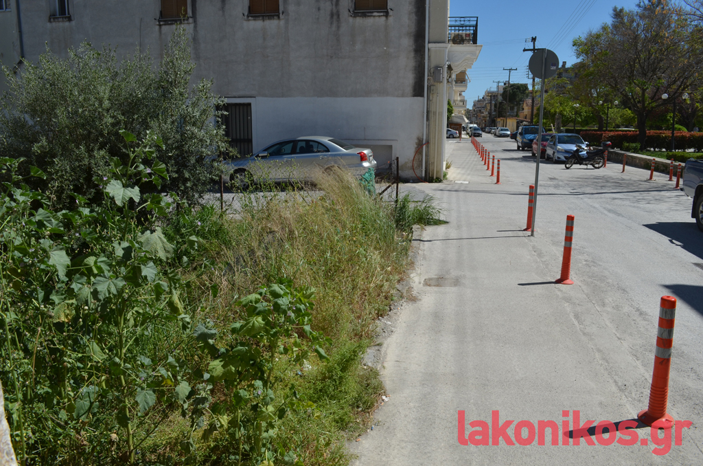 Ωστόσο, ας μπούμε στην ουσία και τη σοβαρότητα του θέματος: Η επέκταση του πεζόδρομου Κλεομβρότου, που διανοίχθηκε πριν μερικά χρόνια ενώνοντας την Αγίου Νίκωνος και Χαμαρέτου, χρησιμοποιείται για διέλευση-στάθμευση οχημάτων και ως πεζοδρόμιο. Όπως καταγγέλλεται στον «Λακωνικό Τύπο», όμως, από τη γωνία των οδών Αγίου Νίκωνος και Κλεομβρότου και κατά μήκος του συγκεκριμένου δρόμου έως τη Χαμαρέτου, δίπλα στο οδόστρωμα βρίσκονται ιδιωτικά οικόπεδα, που ουσιαστικά είναι βάραθρα αποτελούμενα από ανομοιογενείς κοιλότητες, θυμίζοντας εικόνα από καλδέρα έως ελβετικό τυρί. Το χειμώνα κατακρατούνται νερά που έχουν κάνει σαθρό το έδαφος, όπως δείχνει μια απλή, ανειδίκευτη ματιά, ενώ σε κοντινή απόσταση βρίσκονται μονοόροφα κτίρια ή πολυκατοικίες.