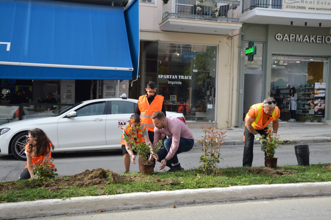 Μαθητές και μαθήτριες των τμημάτων Α1 και Α2 του 1ου Γυμνασίου Σπάρτης είχαν την ευκαιρία να συμμετάσχουν στον καλλωπισμό της πόλης τους, φυτεύοντας τριανταφυλλιές στην οδό Λυκούργου, έπειτα από πρόσκληση του αντιδημάρχου Αγροτικής Ανάπτυξης, Άρδευσης, Πρασίνου και Κοιμητηρίων, Ευστράτιου Κοκκορού.