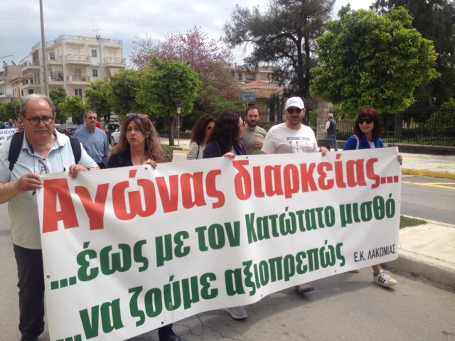 «Δεν πρόκειται να φύγουμε από τους δρόμους έως με τον κατώτατο μισθό να ζούμε αξιοπρεπώς». Με αυτή τη φράση ξεκίνησε την ομιλία του ο πρόεδρος του Εργατικού Κέντρου Λακωνίας, Νίκος Μηνακάκης, δίνοντας το έναυσμα της συγκέντρωσης στο Πάρκο ΟΤΕ, την Τετάρτη (17/4), ημέρα γενικής απεργίας της ΓΣΕΕ. Εκ μέρους της ΑΔΕΔΥ Λακωνίας τον λόγο πήρε ο επικεφαλής Παναγιώτης Κουμουνδούρος. Χαιρετισμό απηύθυνε εκ μέρους των σωματείων συνταξιούχων ΕΦΚΑ ΙΚΑ και ΤΕΒΕ Λακωνίας, ο Χαρίλαος Ξερούλης. Τους αγρότες και κτηνοτρόφους εκπροσώπησε ο Ηλίας Αρφάνης. Στη συγκέντρωση, έδωσαν το «παρών» δάσκαλοι από τον σύλλογο πρωτοβάθμιας εκπαίδευσης «Πλήθων», εκπρόσωποι του συλλόγου υπαλλήλων της ΠΕ Λακωνίας και του συλλόγου εργαζομένων του νοσοκομείου Σπάρτης. Τη συμμετοχή του είχε ανακοινώσει το Τμήμα Εργατικής Πολιτικής του ΣΥΡΙΖΑ Λακωνίας.