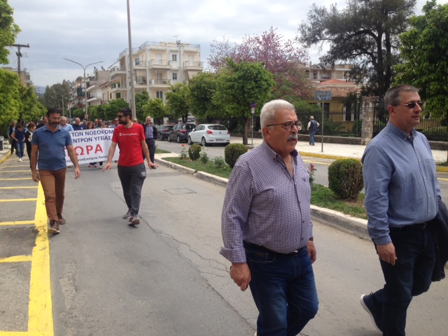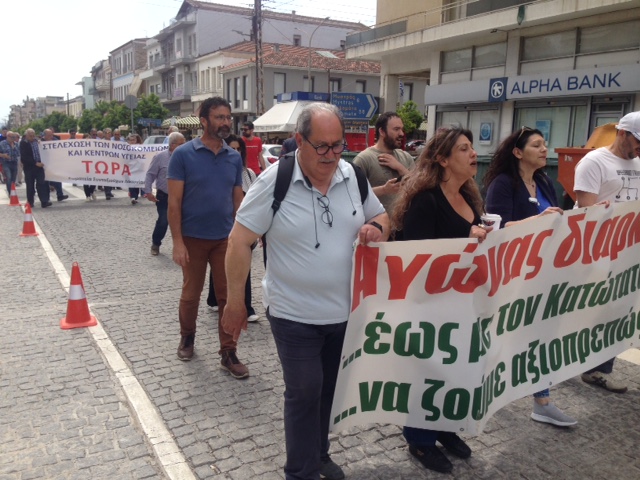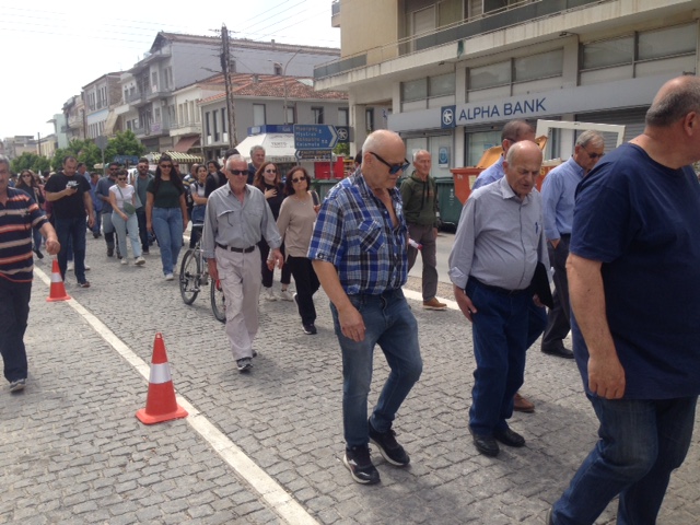 Η συγκέντρωση, στη συνέχεια, μετατράπηκε σε πορεία διαμαρτυρίας, κατά μήκος της Κωνσταντίνου Παλαιολόγου. Φτάνοντας στο ύψος της Πινακοθήκης, η πορεία έκανε αναστροφή κι επέστρεψε στην αφετηρία της. Επόμενα ραντεβού, η απεργία της Πρωτομαγιάς και η 24ωρη απεργία της ΑΔΕΔΥ την Τρίτη 21 Μαΐου.