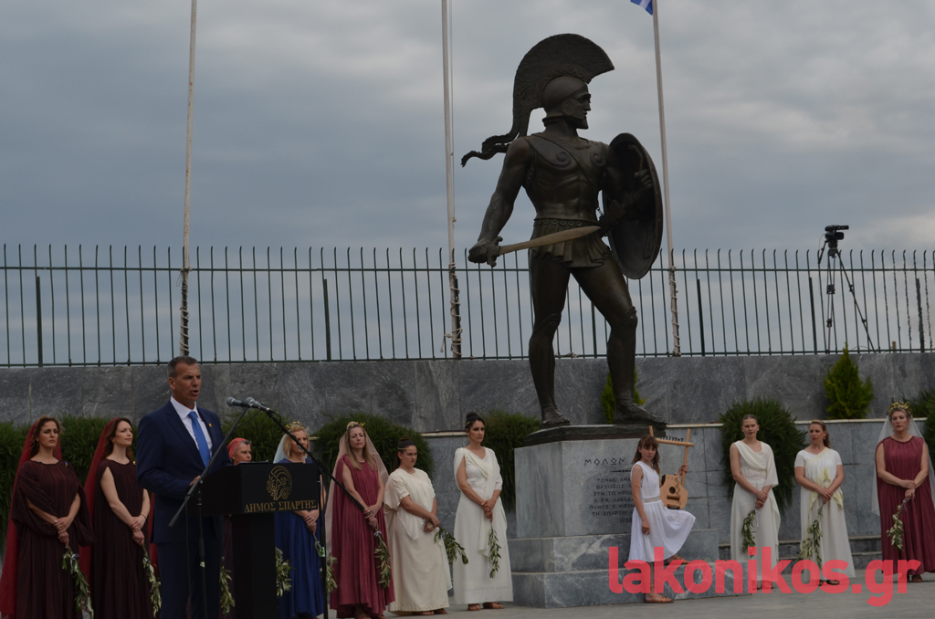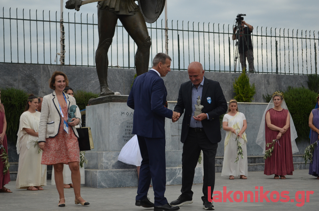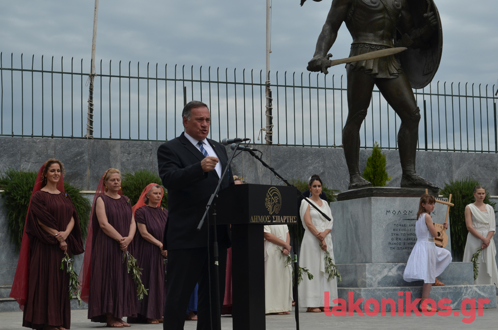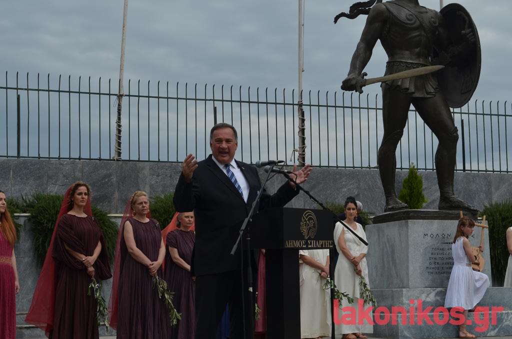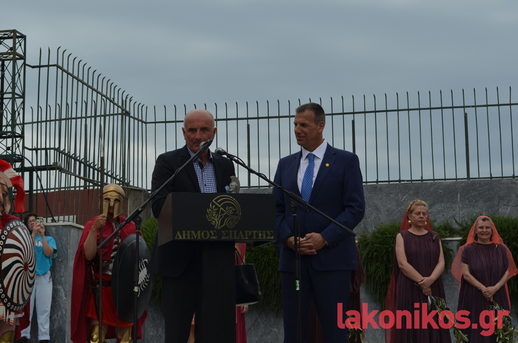 «Φίλοι της Ολυμπιακής Επιτροπής, εκ μέρους των συνδημοτών μας, σας ευχαριστούμε πάρα πολύ, που καταλάβατε και σκύψατε με πολλή αγάπη στο αίτημά μας να περάσει η Φλόγα από τη Σπάρτη. Ξέρω ότι ήταν υπέρβαση για εσάς», τόνισε παίρνοντας τον λόγο ο Μιχ. Βακαλόπουλος, αναγνωρίζοντας τη γενναία απόφαση της ΕΟΕ.