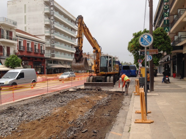 Ήδη από τη Δευτέρα (22/4) με πλέγμα αποκλείστηκε το ρεύμα καθόδου -προς Νότον- της κεντρικής λεωφόρου, στη διασταύρωση Βρασίδου με Παλαιολόγου, μπροστά ακριβώς από το ξενοδοχείο «Μενελάιον». Από το σημείο αυτό και μέχρι τη διασταύρωση με Λυκούργου προειδοποιητική σήμανση συμβουλεύει τους οδηγούς να μην παρκάρουν, λόγω των έργων.