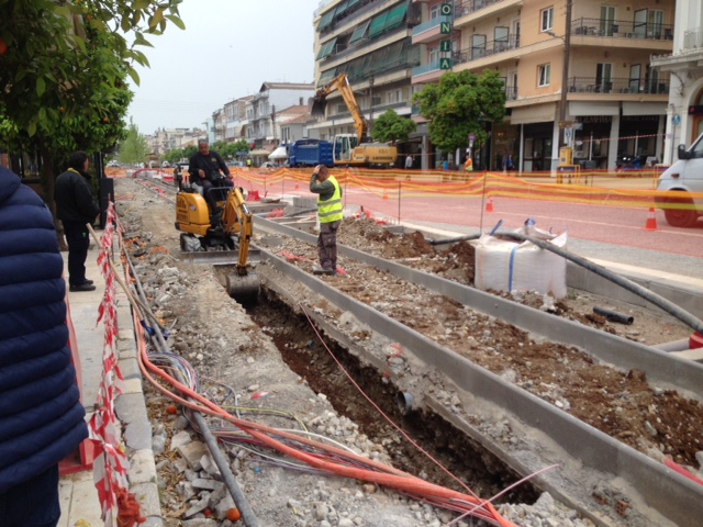Ο σύμβουλος επέμεινε στη σημασία της συνεργασίας Δήμου, αναδόχου και υπηρεσιών ώστε να ολοκληρωθεί το έργο. «Όταν χρειαστεί, θα πάρω κι εγώ το φτυάρι», είπε. Στο ίδιο σημείο εκτελούνται και πρόδρομες εργασίες μετακίνησης του δικτύου οπτικών ινών. Υπενθυμίζεται πως η τεχνική υπηρεσία είχε αναφέρει την ύπαρξη οπτικών ινών των εταιρειών «Cosmote» και «Vodafone» στο τμήμα της Παλαιολόγου ανάμεσα στις οδούς Λυκούργου και Βρασίδου και ζήτησε την μετατόπισή τους.