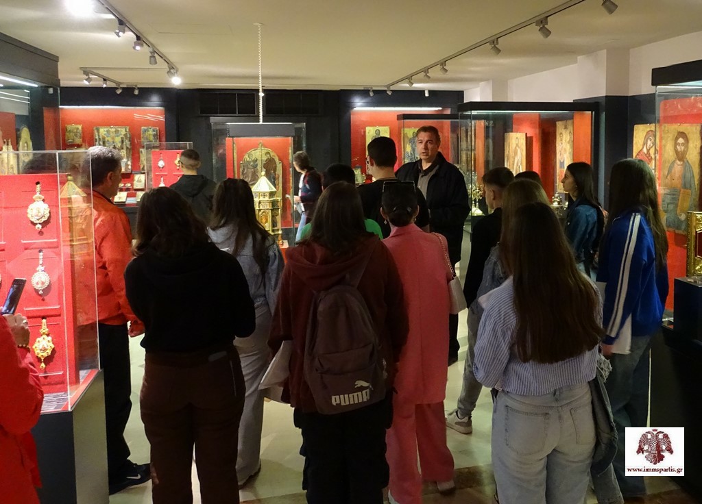 Στη συνέχεια, τα παιδιά επισκέφθηκαν το Μουσείο Εκκλησιαστικής Τέχνης, όπου ξεναγήθηκαν από τον επιμελητή του κ. Δημήτριο Μπαγιώκο, γνωρίζοντας πτυχές της τοπικής Εκκλησιαστικής ιστορίας, αλλά και συμβολισμούς της Ορθοδοξίας. Επίσης, τα παιδιά ενημερώθηκαν για την λειτουργία της Εκκλησιαστικής Βιβλιοθήκης από τον επιμελητή της κ. Βασίλειο Κουδούνη, ενώ αμέσως μετά επισκέφθηκαν και τον ιστορικό Μητροπολιτικό Ναό Ευαγγελιστρίας.