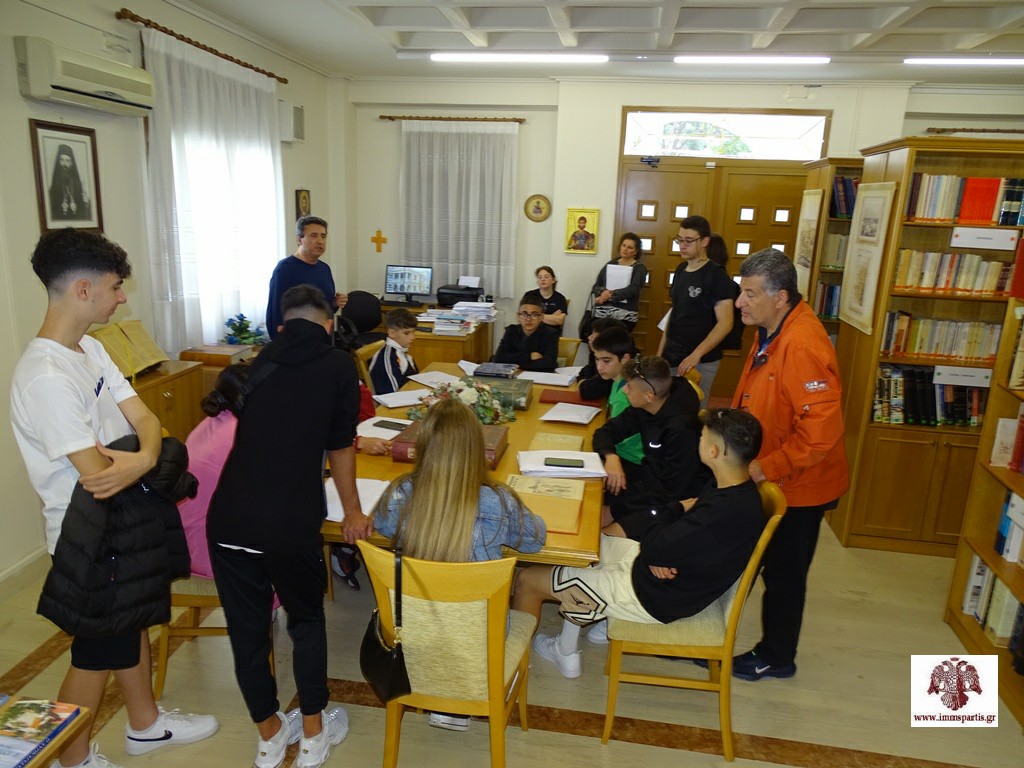 Τα παιδιά συνοδευόμενα από τους εκπαιδευτικούς τους, κ. Ευαγγελία Καρακατσάνη, θεολόγο, κ. Δημήτριο Τζανή, καθηγητή φυσικής αγωγής και κ. Βάγια Μπόντη, φιλόλογο, βρέθηκαν στο Επισκοπείο, όπου έτυχαν θερμής υποδοχής από τον σεβασμιώτατο Μητροπολίτη κ. Ευστάθιο και τον γενικό αρχιερατικό επίτροπο της ΙΜΜΣ μας, αιδ. πρωτ. Συμεών Παπαγεωργίου, ο οποίος κατάγεται επίσης από την Αγιάσο.