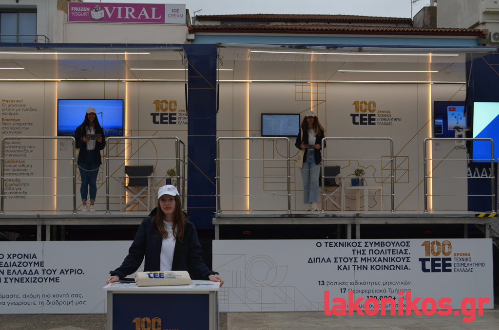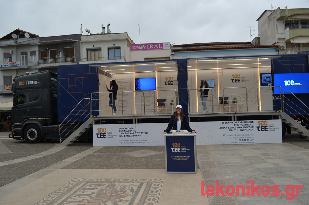 Το «ταξίδι» του «TEE Roadshow» στην Πελοπόννησο ξεκίνησε τη Δευτέρα (22/4) από την Καλαμάτα, ενώ επόμενος σταθμός ήταν την Τρίτη (23/4) η Σπάρτη. Στην κεντρική πλατεία της πόλης αφίχθη κλιμάκιο με επικεφαλής τον πρόεδρο του ΤΕΕ Ελλάδας, κ. Γιώργο Στασινό, που προχώρησε σε ενημέρωση των πολιτών με τη διανομή σχετικού υλικού. Στον χώρο δέσποζε το μεγάλο φορτηγό που στάθμευσε επί της πλατείας, όπου πρόσχαρες κοπέλες ήταν πρόθυμες να απαντήσουν σε κάθε ερώτηση των περαστικών, ενώ παρόντες ήταν αρκετοί επαγγελματίες μηχανικοί της Λακωνίας.