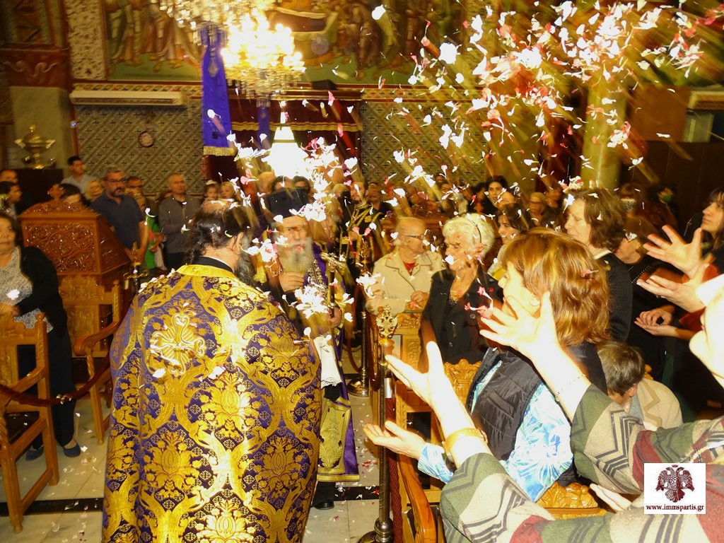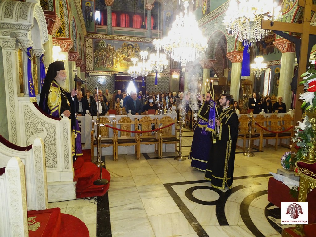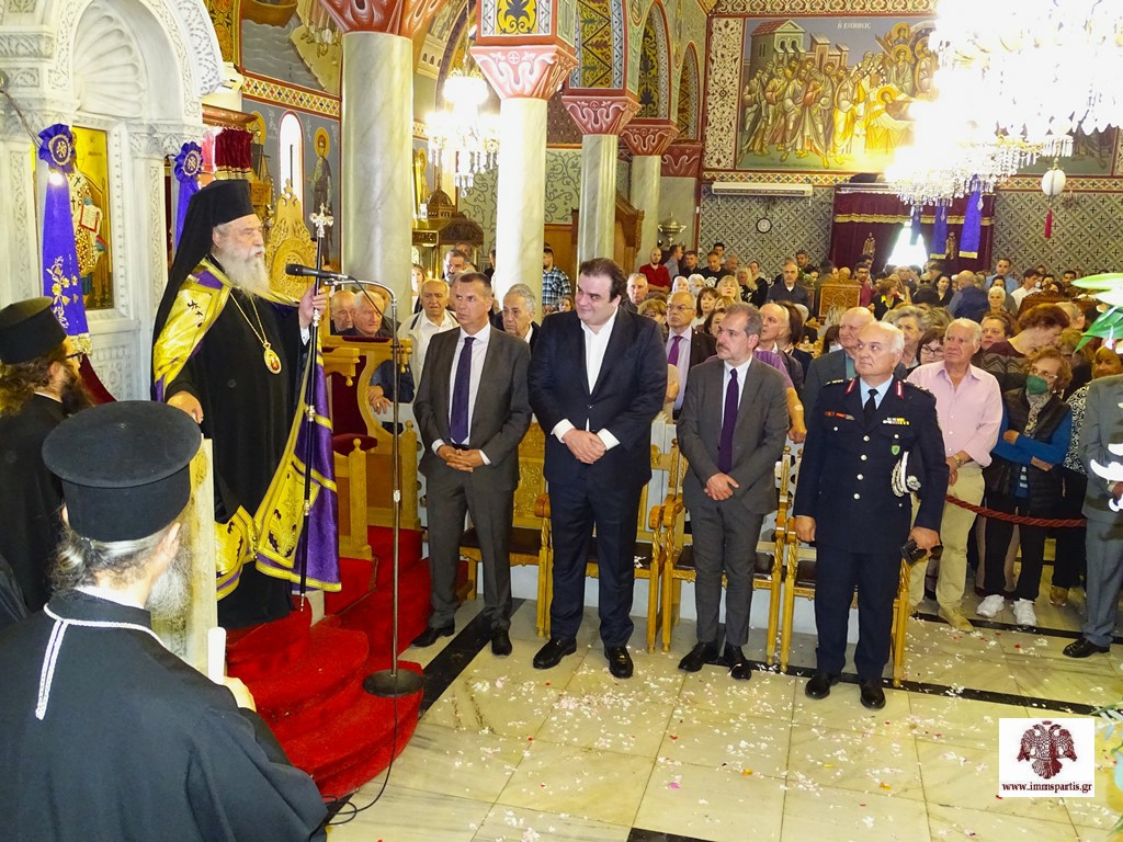 Με την ολοκλήρωση της λατρευτικής σύναξης, ο σεπτός ποιμενάρχης καλωσόρισε τον υπουργό Κυριάκο Πιερρακάκη, ευχόμενος «ό,τι καλό κι ευλογημένο έχει η ψυχή του να το εξακτινώσει, ώστε να βοηθηθεί ο τόπος μας που έχει ανάγκη». Ολοκληρώνοντας, ευχήθηκε «η λαμπροφόρος Ανάσταση του Κυρίου μας να φέρει τη χαρά και την ειρήνη στις ζωές όλων των χριστιανών».