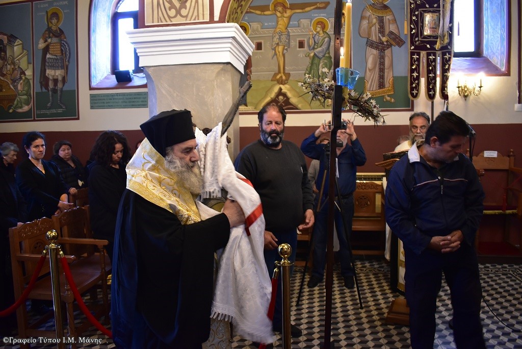 Το πρωί της Μ. Παρασκευής, για την ιερά ακολουθία της Αποκαθήλωσης του Κυρίου από τον Τίμιο Σταυρό, ο σεβασμιώτατος Μητροπολίτης Μάνης κ. Χρυσόστομος Γ’ μετέβη στο Οίτυλο, όπου και κήρυξε τον θείο λόγο.