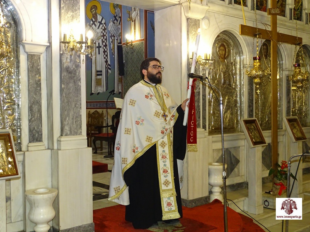 Πριν την ολοκλήρωση της εσπερινής λατρευτικής σύναξης, ο Επίσκοπος κ. Θεόφιλος, αφού μετέφερε τις πατρικές ευχές του σεβασμιωτάτου Μητροπολίτη κ. Ευσταθίου, ευχαρίστησε θερμά για την παρουσία του τον θεοφιλέστατο Επίσκοπο Τολιάρας και Νοτίου Μαδαγασκάρης. Σημειώνεται ότι ο σεπτός Ποιμενάρχης βρισκόταν στην Κατερίνη, προκειμένου να εκπροσωπήσει την Εκκλησία της Ελλάδος στην εξόδιο ακολουθία του μακαριστού πρώην Μητροπολίτη Κίτρους, Κατερίνης και Πλαταμώνος κυρού Αγαθόνικου.