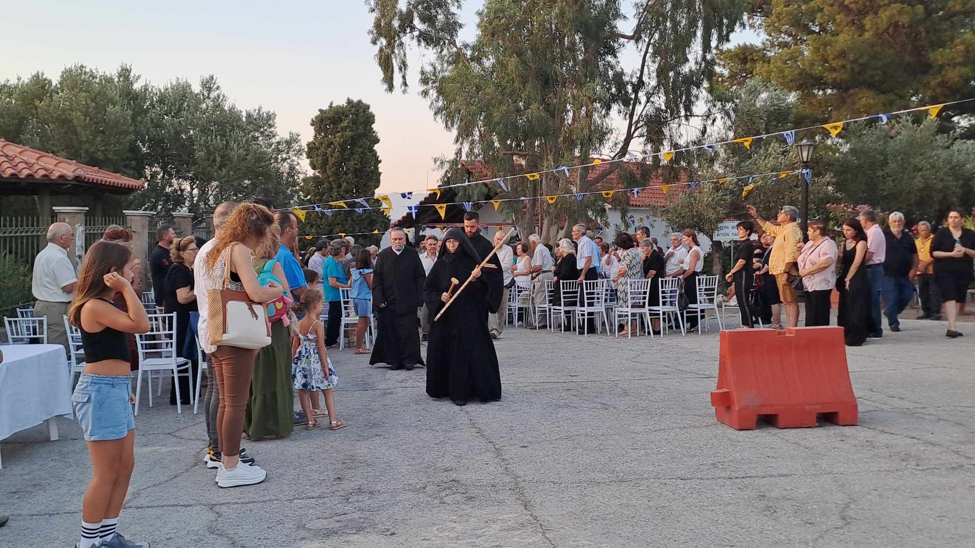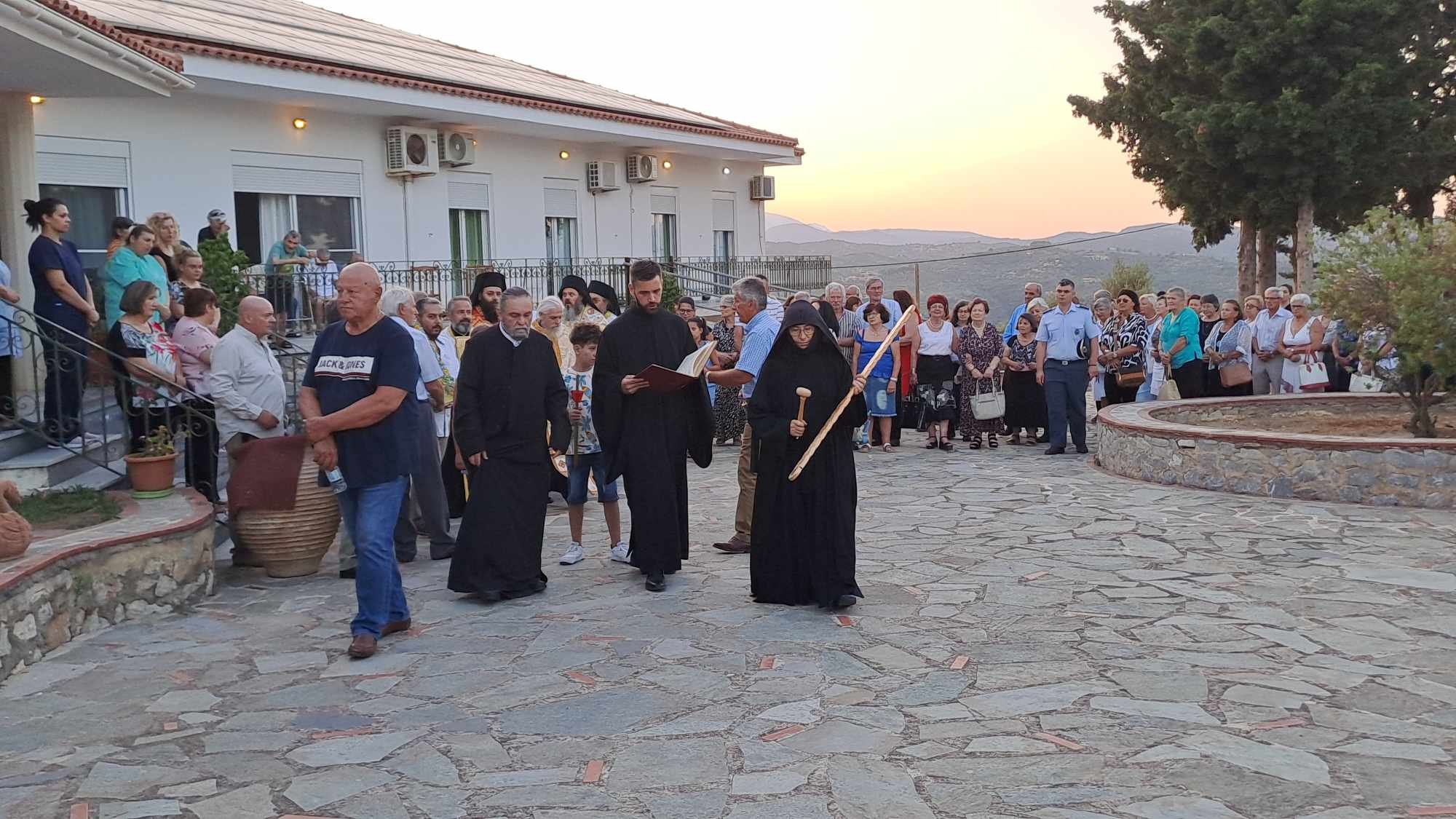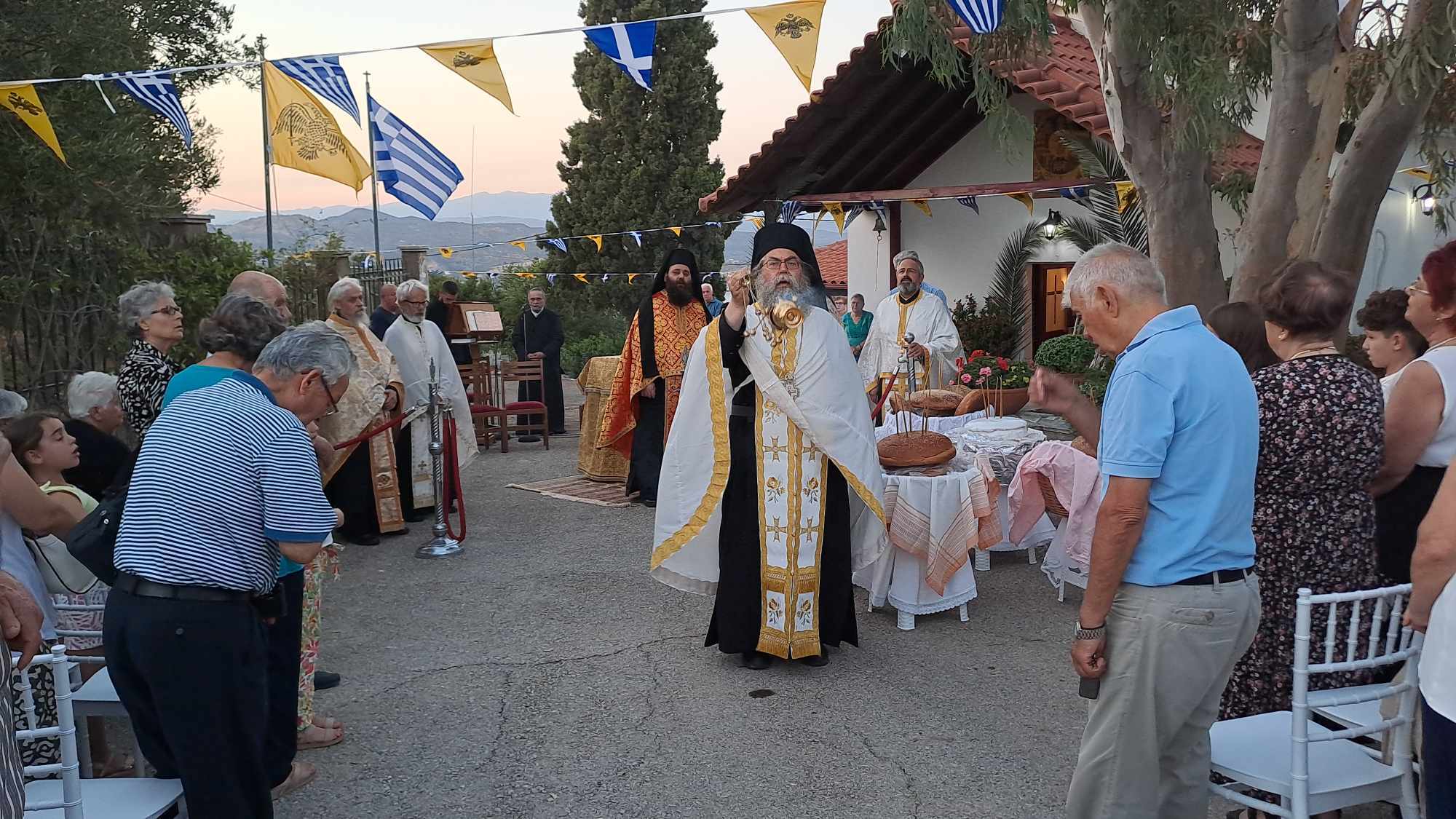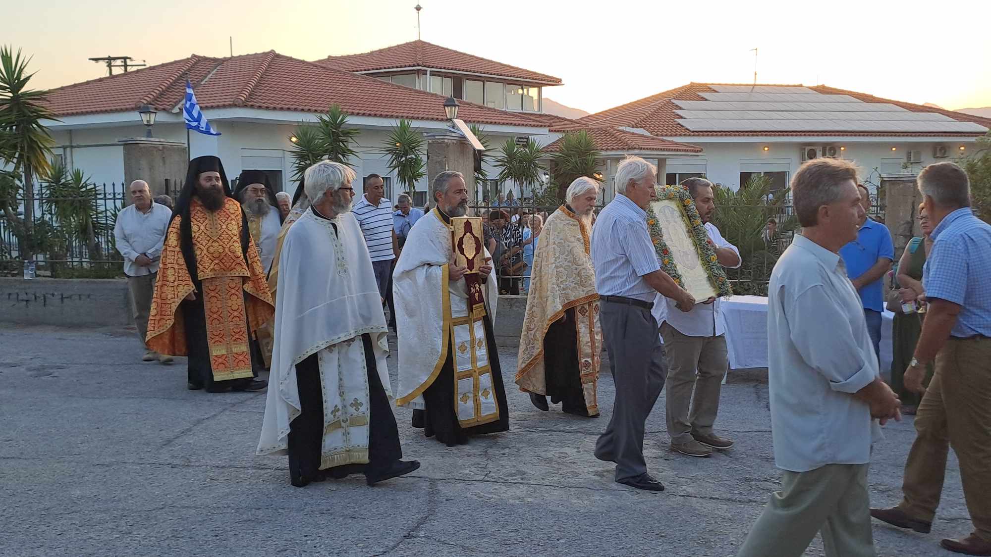 Την παραμονή της εορτής, Σάββατο (29/6), τελέστηκε πανηγυρικός εσπερινός, όπου χοροστάτησε ο πρωτοσύγκελος της Μητρόπολης Μάνης, π. Συμεών Λαμπρινάκος. Μετά τον εσπερινό, παρουσία πλήθους πιστών, έγινε λιτανεία της ιεράς εικόνας στον περιβάλλοντα χώρο της ΙΜ Αγίων Πάντων.