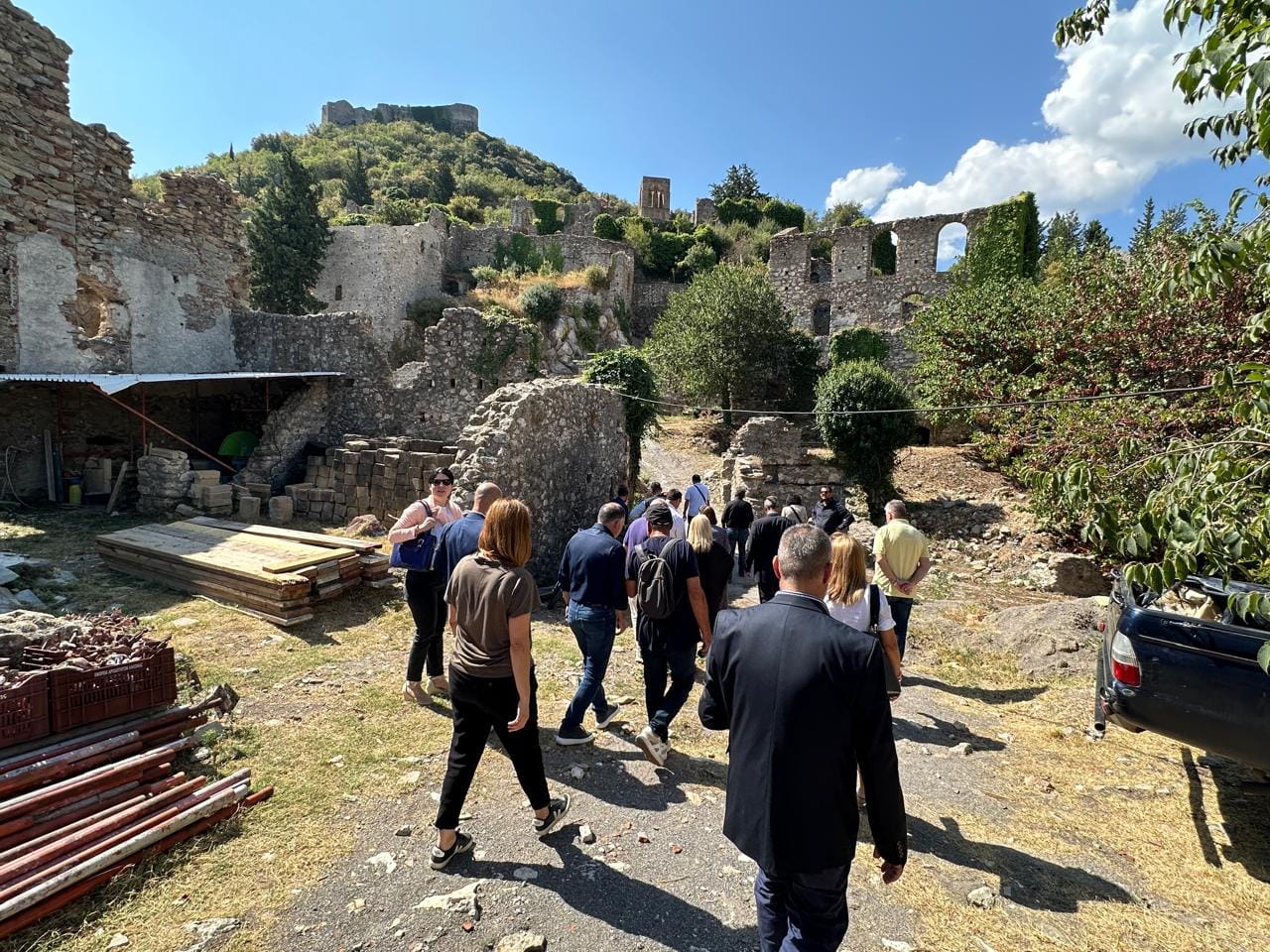 Ανάμεσα σε άλλους, στο πλευρό της υπουργού Μενδώνη στον Μυστρά, εκτός από τα υπηρεσιακά στελέχη του ΥΠΠΟ, βρέθηκαν και ο βουλευτής Θανάσης Δαβάκης, ο αντιπεριφερειάρχης Λακωνίας, Θεόδωρος Βερούτης, ο δήμαρχος Σπάρτης, Μιχάλης Βακαλόπουλος κ.α..