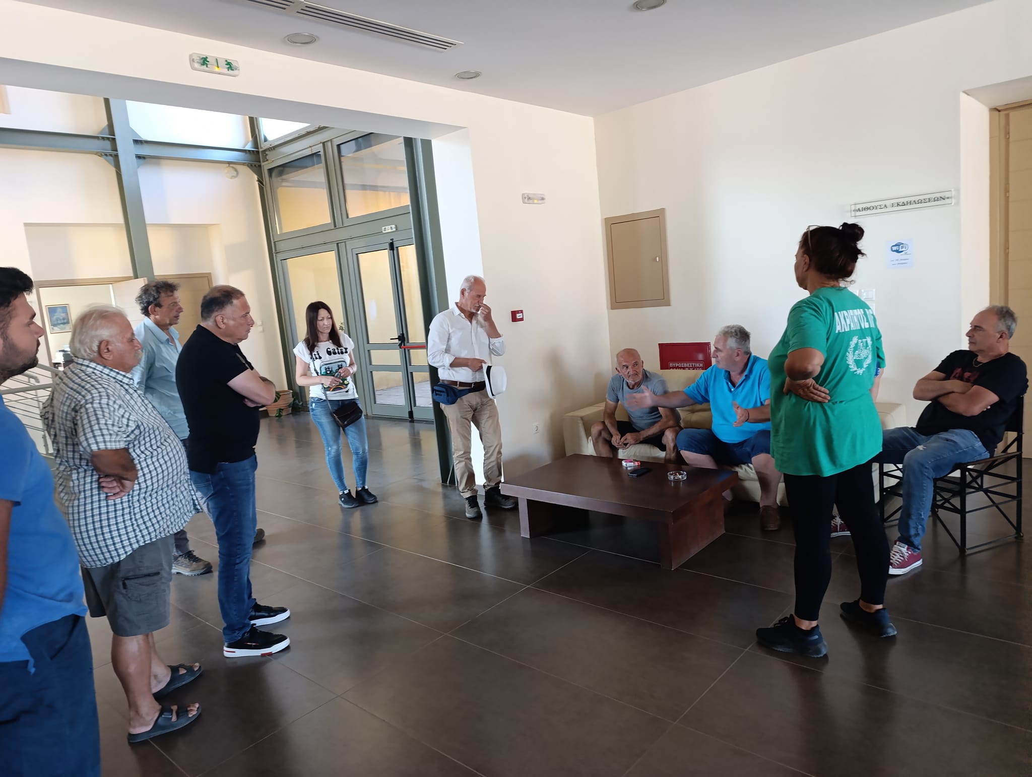 Στο πλαίσιο της αυτοψίας, πραγματοποιήθηκε συνάντηση στο δημαρχείο Ασωπού, όπου έγινε η πρώτη ενημέρωση από τον αντιδήμαρχο Γιάννη Σούρλα, παρουσία και του βουλευτή Λακωνίας, Νεοκλή Κρητικού.