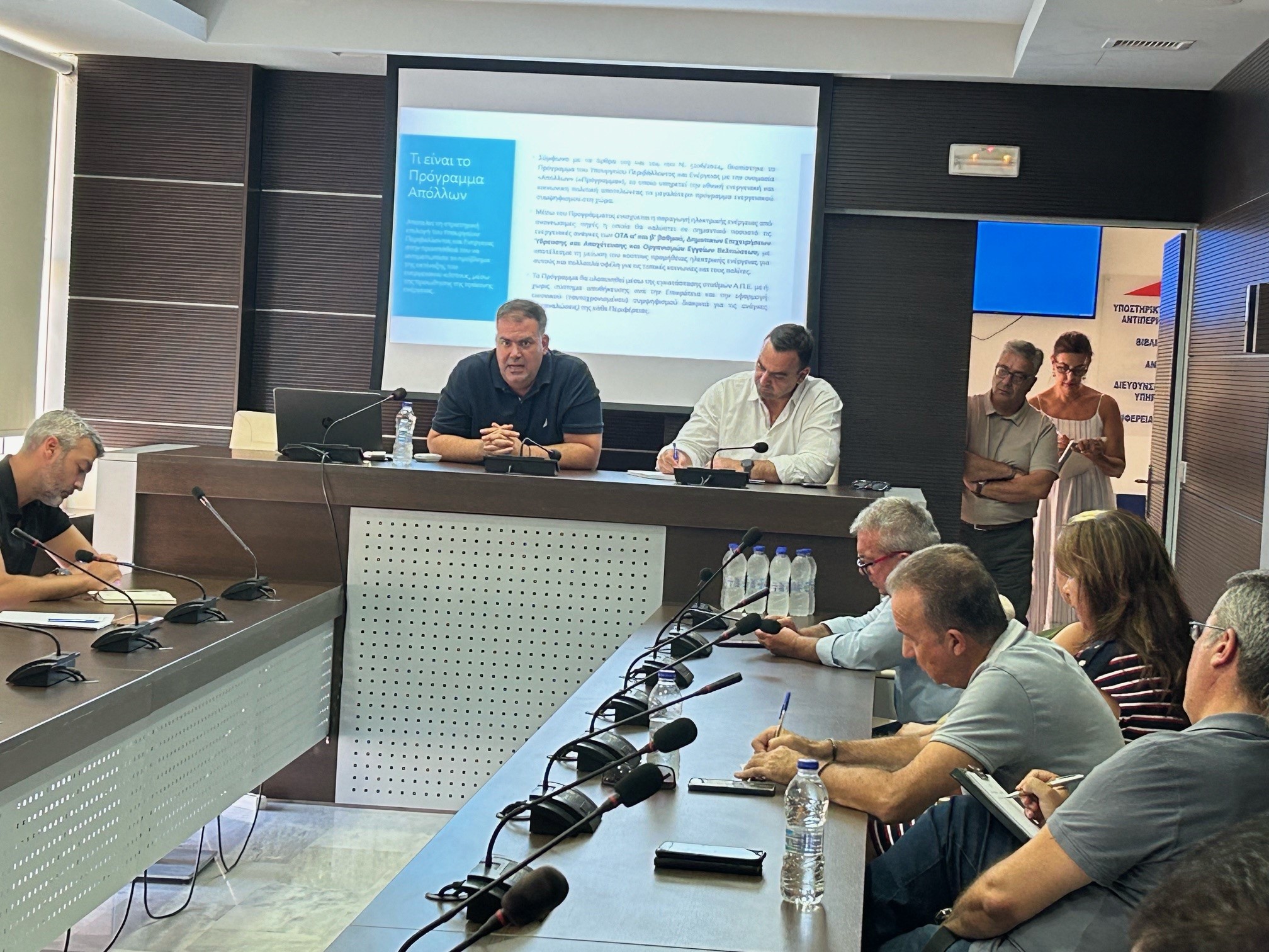 Η συνάντηση εντάσσεται στο πλαίσιο υλοποίησης του προγράμματος «Απόλλων», το οποίο όπως αναφέρθηκε, «αποτελεί το μεγαλύτερο πρόγραμμα ενεργειακού συμψηφισμού στη χώρα και υπηρετεί την εθνική ενεργειακή και κοινωνική πολιτική».