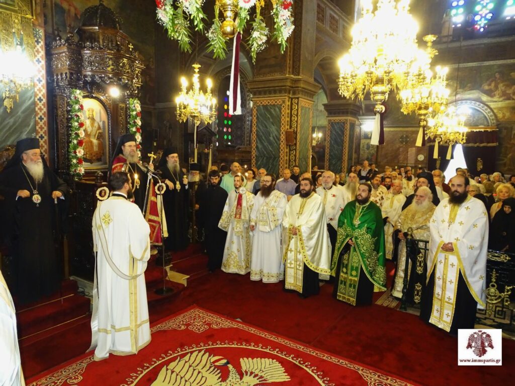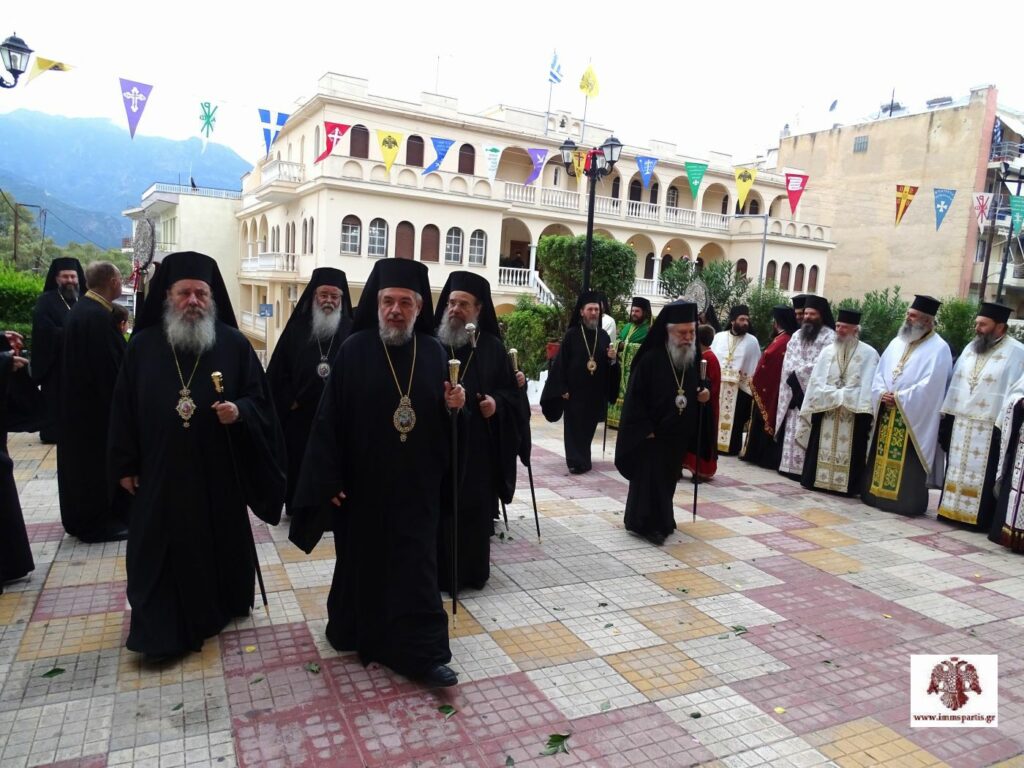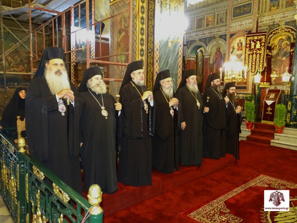 Στην εσπερινή λατρευτική σύναξη συμμετείχαν οι σεβασμιώτατοι Μητροπολίτες Σερβίων και Κοζάνης κ. Παύλος, Πατρών κ. Χρυσόστομος, Μεσσηνίας κ. Χρυσόστομος, Θηβών, Λεβαδείας και Αυλίδος κ. Γεώργιος, Σταγών και Μετεώρων κ. Θεόκλητος, Ιερισσού, Αγίου Όρους και Αρδαμερίου κ. Θεόκλητος, Μάνης κ. Χρυσόστομος, Γλυφάδας κ. Αντώνιος και Γόρτυνος και Μεγαλοπόλεως κ. Νικηφόρος. Επίσης, έλαβαν μέρος οι θεοφιλέστατοι Επίσκοποι Κερνίτσης κ. Χρύσανθος, Βοηθός Επίσκοπος της Μητρόπολης Πατρών, Τεγέας κ. Θεόκλητος, Βοηθός Επίσκοπος της Μητρόπολης Μαντινείας και Κυνουρίας, Λακεδαιμονίας κ. Θεόφιλος, Βοηθός Επίσκοπος της Μητρόπολης Μονεμβασίας & Σπάρτης (ΜΜΣ), ο αρχιγραμματέας της Ιεράς Συνόδου της Εκκλησίας της Ελλάδος, πανοσιολογιώτατος αρχιμανδρίτης Ιωάννης Καραμούζης και δεκάδες κληρικοί τόσο της ΙΜΜΣ, όσο και από άλλες περιοχές της χώρας.