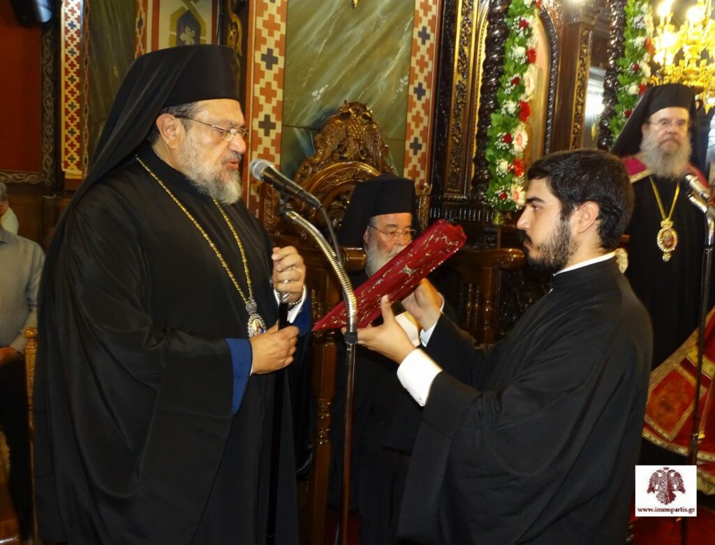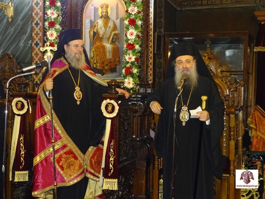 Μετά την ευλόγηση των άρτων, ο σεβασμιώτατος Μητροπολίτης κ. Ευστάθιος ευχαρίστησε τον σεβασμιώτατο Μητροπολίτη Πατρών, για «τη μεγάλη ευλογία που δέχθηκε η Ιερά Μητρόπολή μας», μέσω της προσφοράς των χαριτοβρύτων ιερών λειψάνων του Αγίου Γερβασίου. «Ο νέος Άγιος της Εκκλησίας μας», τόνισε ο σεπτός ποιμενάρχης, «άφησε ανεξίτηλο το αποτύπωμά του τόσο στην Πάτρα, όσο και γενικότερα στην Εκκλησία της Ελλάδος», ενώ και ο ίδιος είχε την ευλογία να τον γνωρίσει κατά την νεότητά του και να εμπνευστεί από την πνευματικότητά του. Στη συνέχεια ζήτησε από τον Μητροπολίτη Πατρών να ομιλήσει για τον νέο Άγιο της Εκκλησίας.