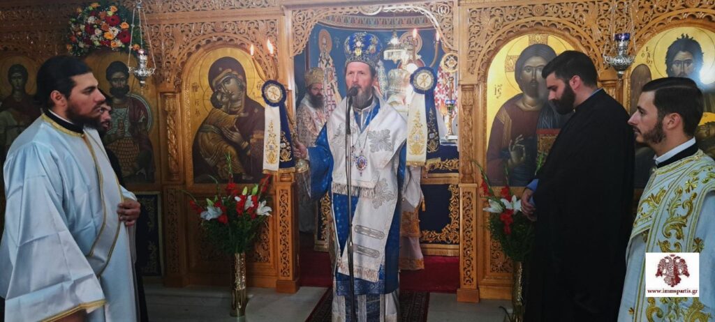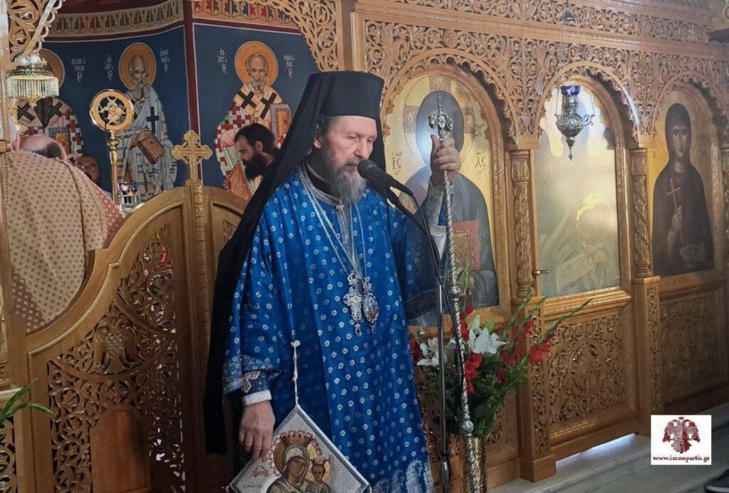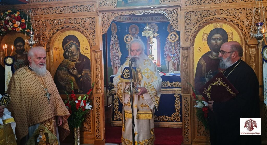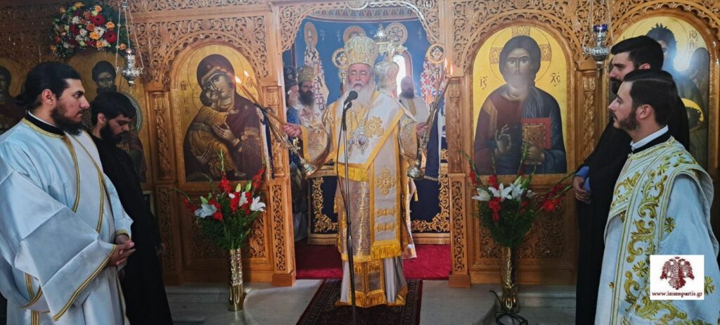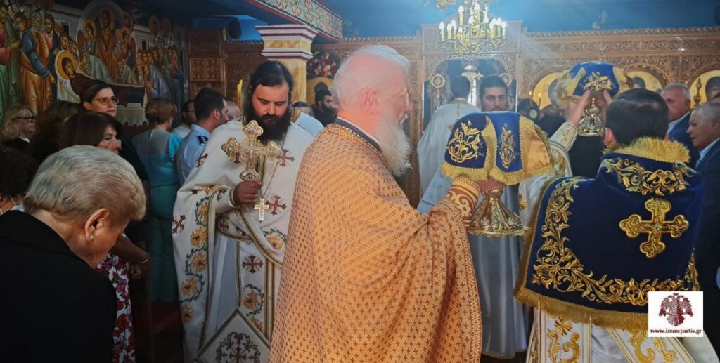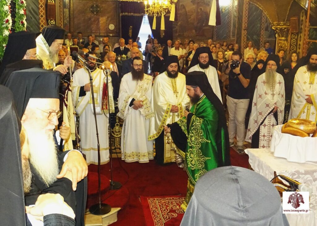 Πριν την πανηγυρική εσπερινή λατρευτική σύναξη, πραγματοποιήθηκε, με την πρέπουσα εκκλησιαστική λαμπρότητα και σε κλίμα κατάνυξης, η υποδοχή αποτμήματος του ιερού λειψάνου του προσφάτως αγιοκαταχθέντος Αγίου Γερβασίου του εκ Πατρών, το οποίο πρόσφερε στην τοπική Εκκλησία ο σεβασμιώτατος Μητροπολίτης Πατρών κ. Χρυσόστομος.