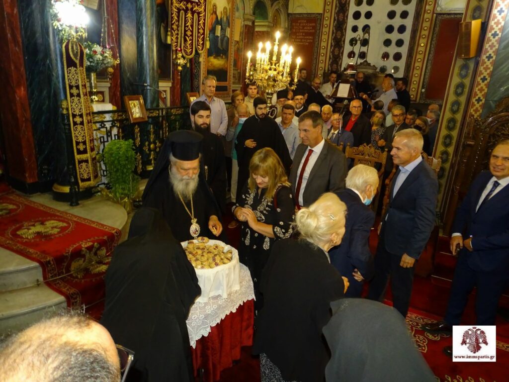 Το απόγευμα της παραμονής της εορτής, Πέμπτη (19/9), στον Μητροπολιτικό Ναό Ευαγγελιστρίας Σπάρτης τελέσθηκε ο πανηγυρικός πολυαρχιερατικός εσπερινός μετ’ αρτοκλασίας, χοροστατούντος του σεβασμιωτάτου Μητροπολίτη Ιερισσού, Αγίου Όρους και Αρδαμερίου κ. Θεοκλήτου.