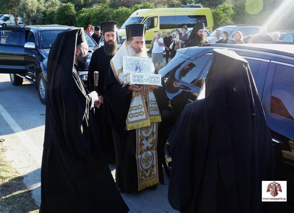 Ειδικότερα, το απόγευμα της Παρασκευής (27/9), πραγματοποιήθηκε με την πρέπουσα λαμπρότητα η υποδοχή αποτμήματος της δεξιάς χείρας τού Οσίου Γρηγορίου, που προέρχεται από την Ιερά Σταυροπηγιακή Μονή Θείας Μεταμορφώσεως του Σωτήρος Καμένων Βούρλων.