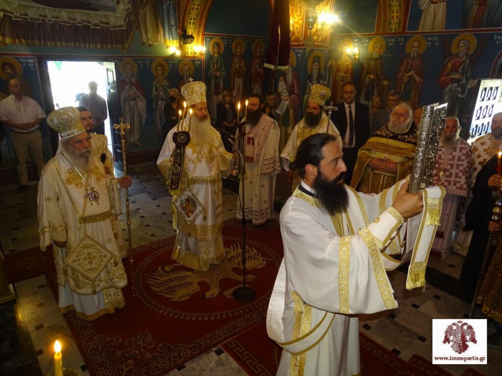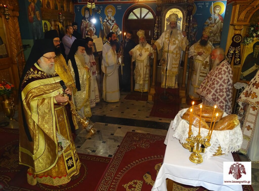 Πριν την απόλυση, ο Μητροπολίτης Ευστάθιος ευχαρίστησε θερμά τον Μητροπολίτη Φθιώτιδος, «για το ανεκτίμητο δώρο που πρόσφερε στην τοπική μας Εκκλησία, για τον χρυσοστομικό λόγο του κατά τη διάρκεια του εσπερινού, αλλά και για την θαυμαστή στάση του κατά τη διάρκεια της Θείας Λειτουργίας, που από μόνη της αποτέλεσε ένα δίδαγμα, αφού εξέπεμπε ευλάβεια, σεβασμό και βαθιά πίστη». Ακολούθως, ευχαρίστησε τον καθηγούμενο της Ιεράς Μονής Μεταμορφώσεως του Σωτήρος Καμένων Βούρλων, πανοσ. αρχ. Σεραφείμ Μαργαρίτου, για την τιμητική παρουσία με τη συνοδεία του και για τη θετική ανταπόκρισή του στο αίτημα της ΙΜΜΣ. Επίσης, ευχαρίστησε τον πρωτοσύγκελλο της Μητρόπολης Φθιώτιδος π. Εφραίμ για την παρουσία του και για «το μεστό νοημάτων κήρυγμά του». Ολοκληρώνοντας, υποσχέθηκε «η τοπική μας Εκκλησία να φυλάξει ως “κόρην οφθαλμού” το ιερό λείψανο, στο οποίο ευλαβικά θα αποθέτουν οι χριστιανοί του ευλογημένου τόπου μας τους πόθους της καρδιάς τους και τις ικεσίες τους στους δύσβατους δρόμους που βαδίζουμε κατά την αποκαλυπτική εποχή μας».