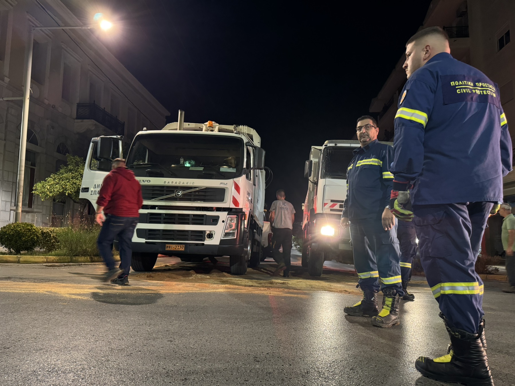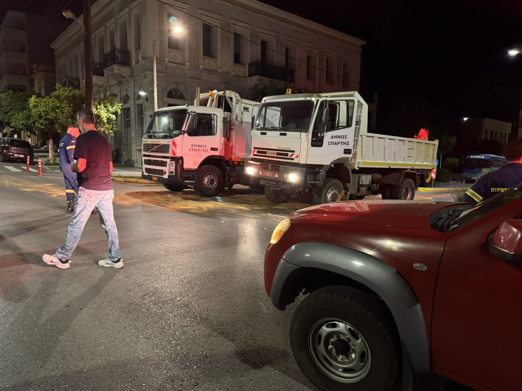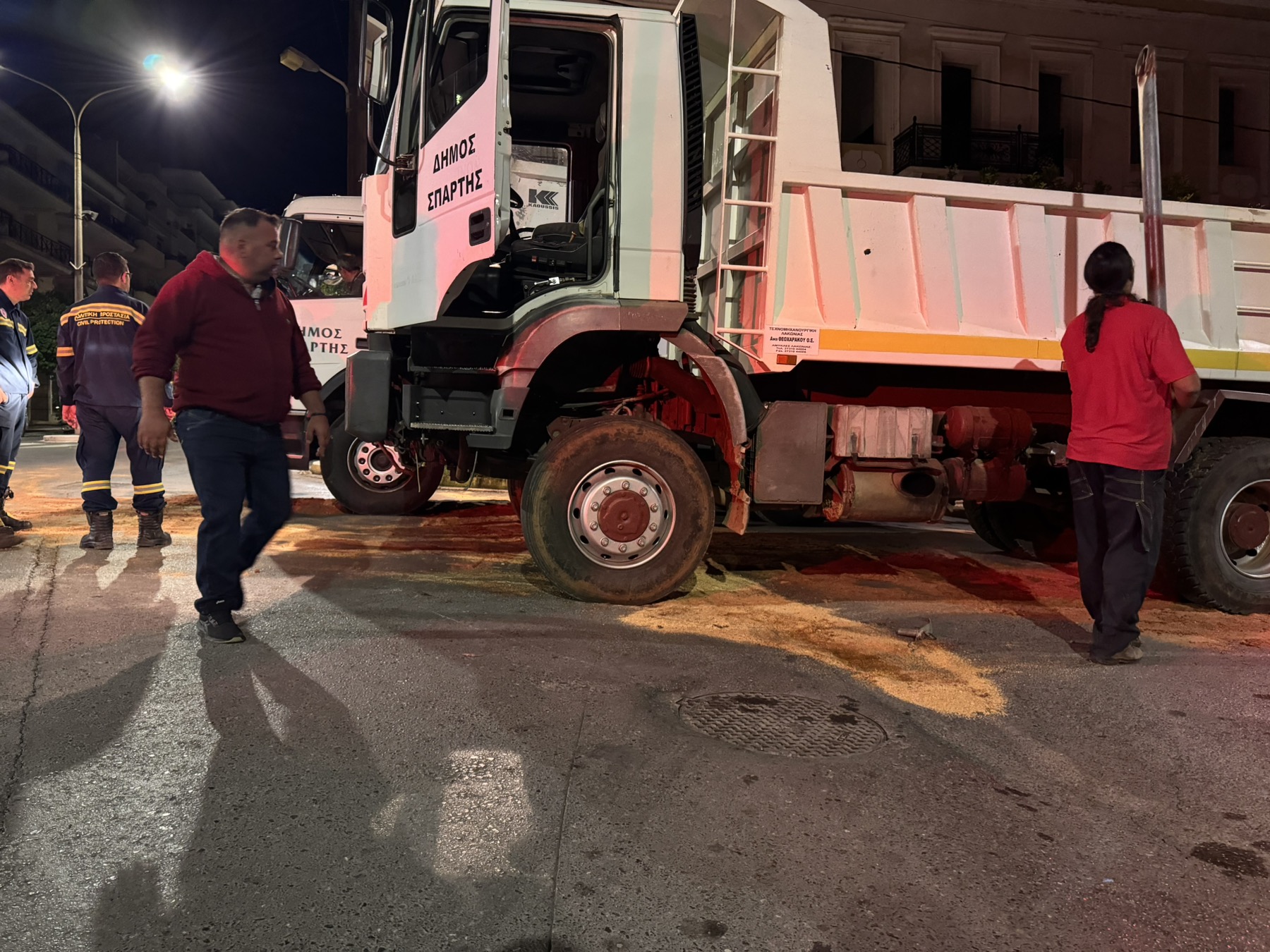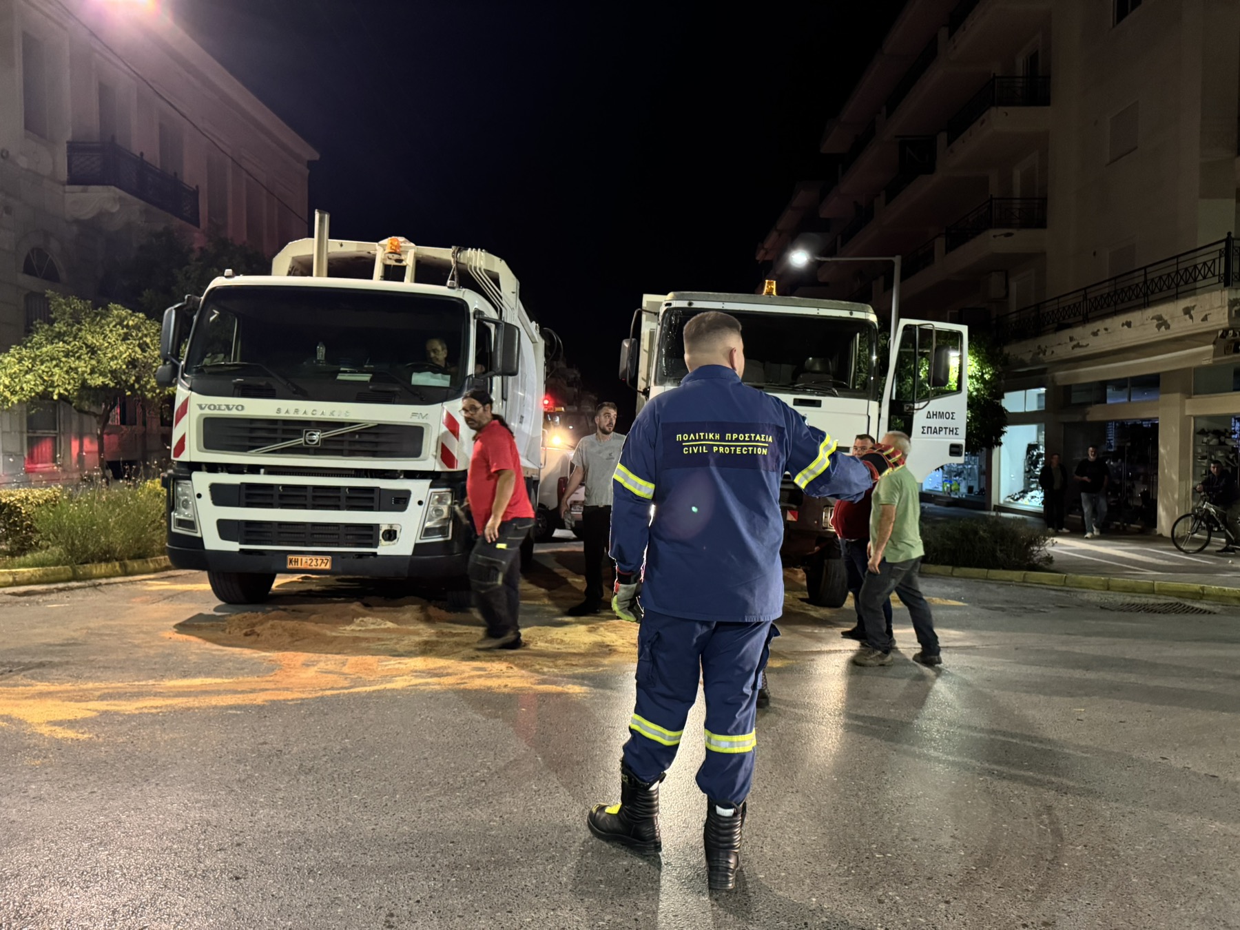 Στο σημείο μετέβησαν εργαζόμενοι Καθαριότητας του Δ. Σπάρτης, που μερίμνησαν για τη μεταφόρτωση των απορριμμάτων στην καρότσα άλλου φορτηγού, ώστε να κυλήσει η διαδικασία. Στο πόδι και οι υπάλληλοι της Πολιτικής Προστασίας, που έριξαν το προβλεπόμενο πριονίδι στην άσφαλτο, για την αποτροπή ατυχήματος λόγω ολισθηρότητας.