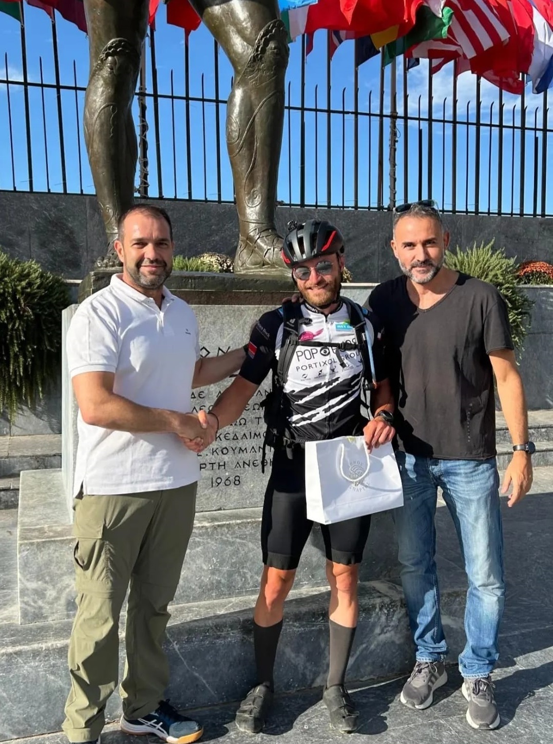 Με τον τερματισμό του ταξιδιού του σε αυτό το εμβληματικό σημείο, όπου έχουν τερματίσει τεράστιοι αθλητές, ο Χρήστος έγινε μέρος της κοινότητάς μας και της ιστορίας αυτού του τόπου. Όλοι τον ευχαριστούμε από καρδιάς. Του ευχόμαστε να παραμείνει δυνατός και υγιής, συνεχίζοντας να περνά μηνύματα όπως το σημερινό, κάνοντας το αγαπημένο του χόμπι».