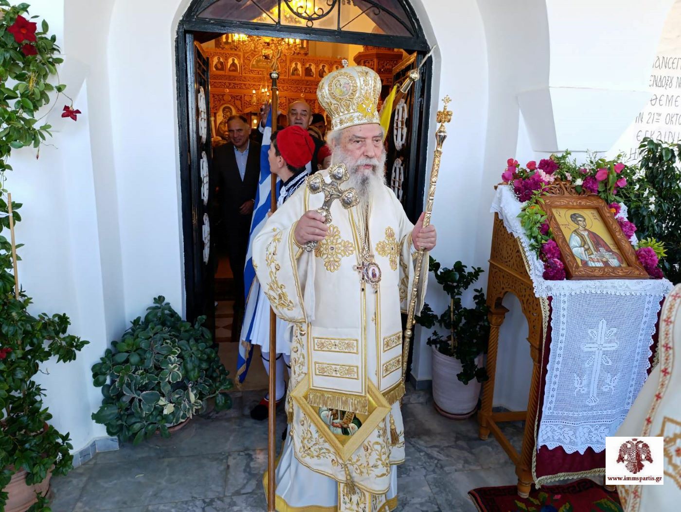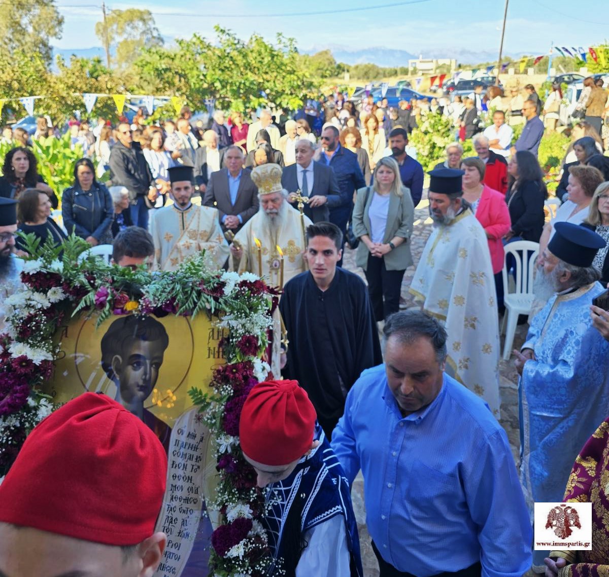 Πριν την απόλυση, πραγματοποιήθηκε σε κατανυκτικό κλίμα, η λιτάνευση της Τιμίας Κάρας και της ιερής εικόνας τού Αγίου πέριξ του ναού.