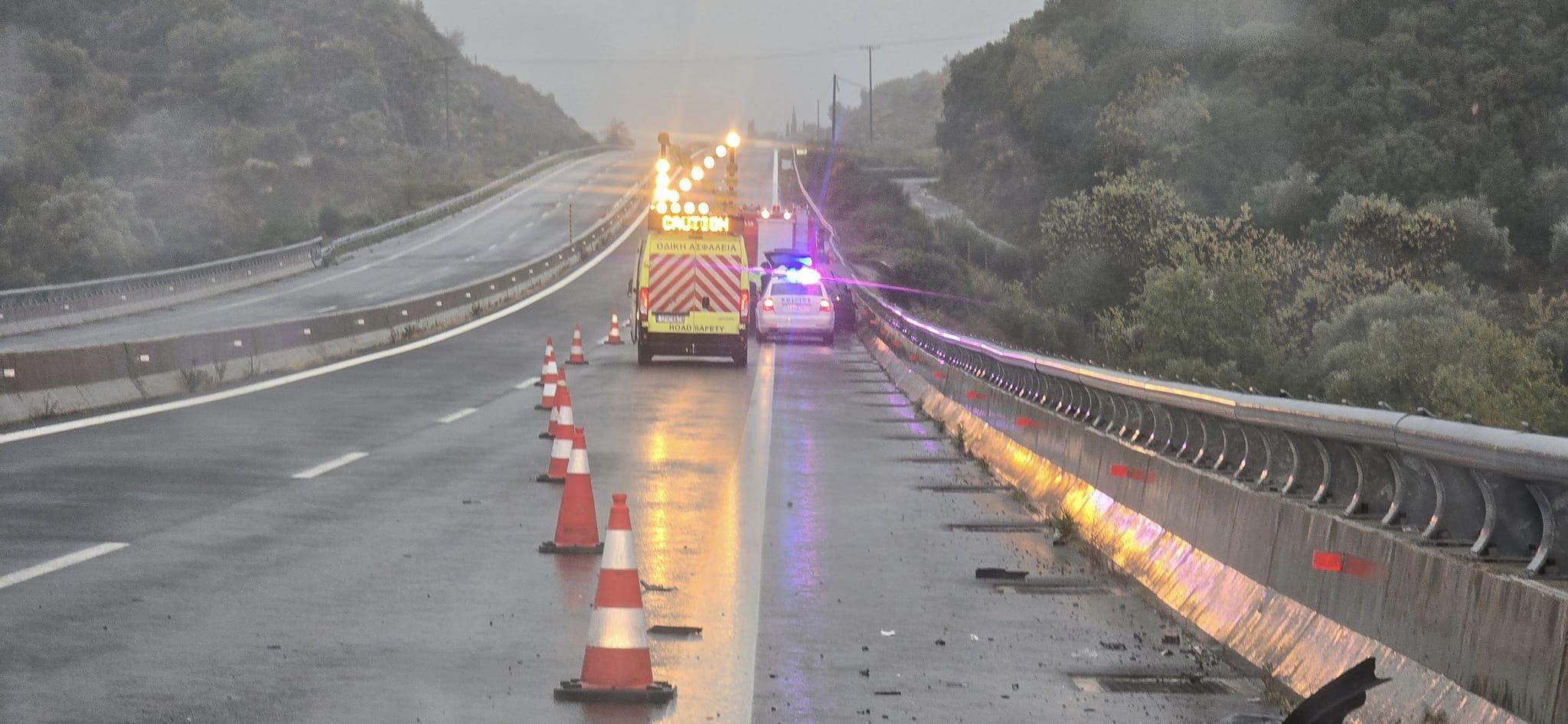 Το ευτύχημα ήταν ότι δεν προκλήθηκαν τραυματισμοί, ωστόσο απαιτήθηκε απεγκλωβισμός από δυνάμεις της Πυροσβεστικής Υπηρεσίας. Επί τόπου μετέβησαν και αστυνομικοί της Τροχαίας, όπως και το ειδικό όχημα οδικής εξυπηρέτησης της εταιρείας «Μορέας».