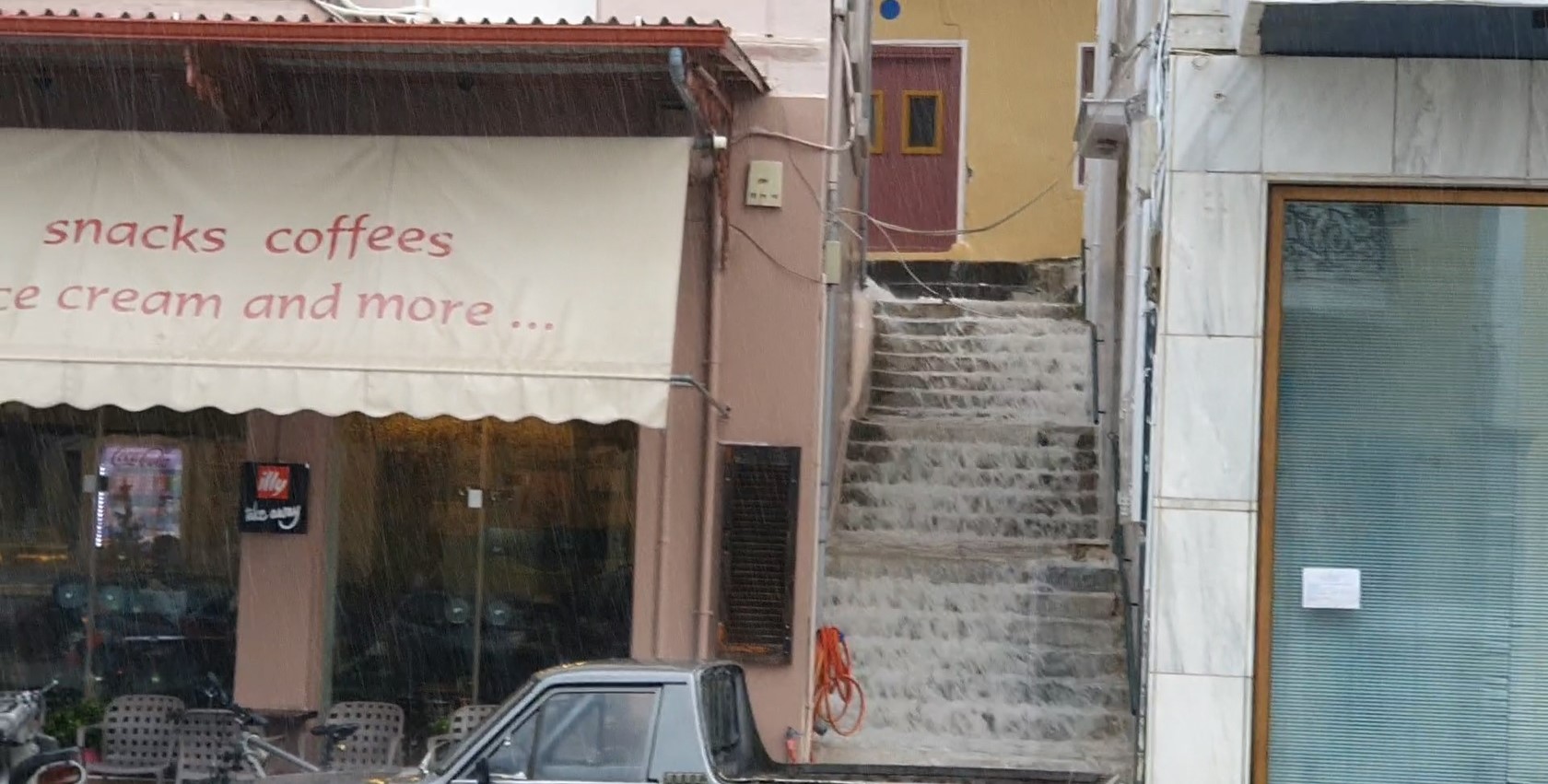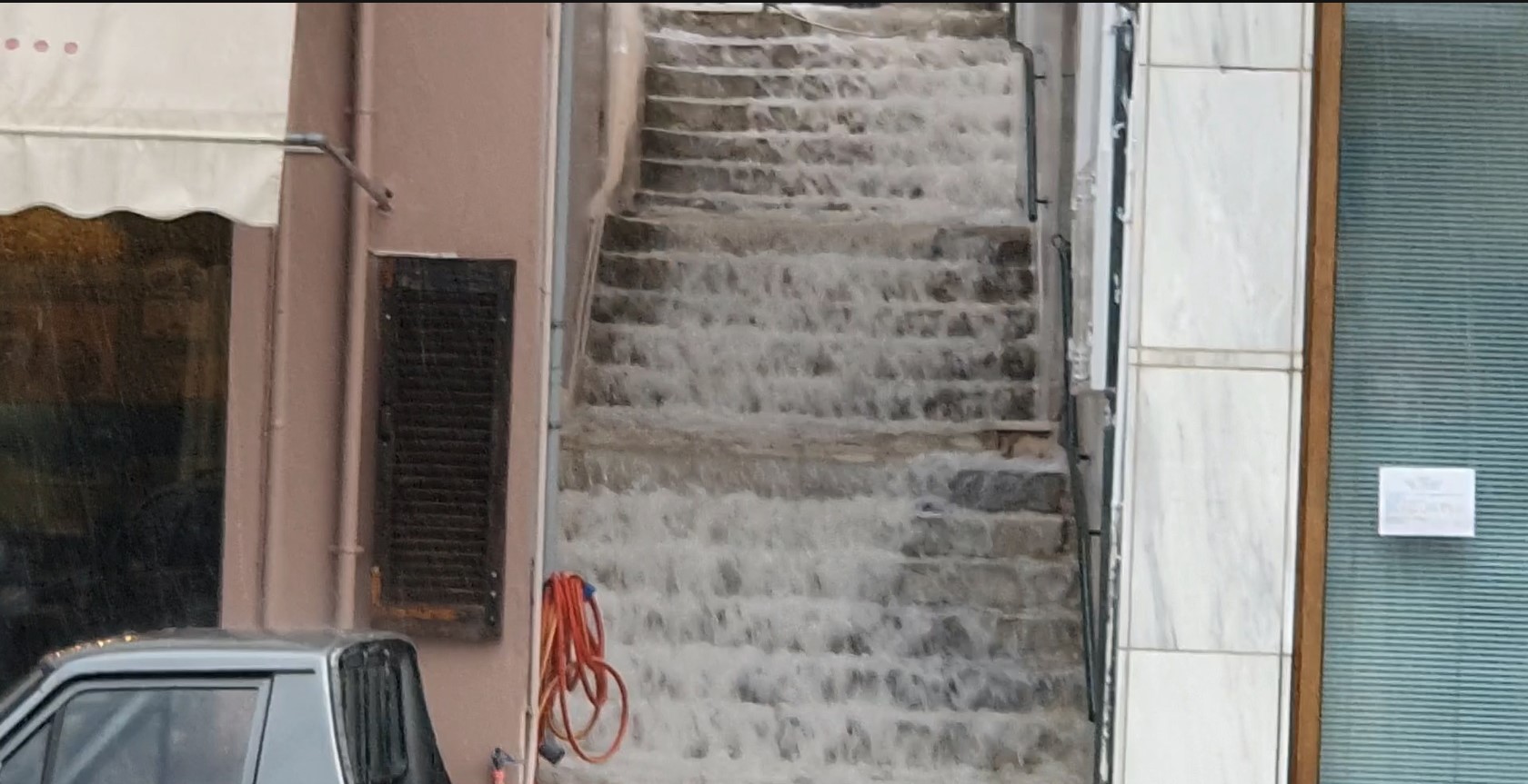 Η περίπου δεκάλεπτη μπόρα, το πρωί της Τετάρτης (13/11) στο Γύθειο, κατέστη ικανή να πλημμυρίσει δρόμους και δημοτικές κλίμακες (σκαλιά) της πόλης. Σε περίπτωση που συνεχιζόταν για λίγο ακόμα η κακοκαιρία, όπως υποστηρίζει στον «ΛΤ» η Ελένη Τζανετάκου, θα «“μεταμορφωνόταν” σε μια… μικρή Βενετία» η πρωτεύουσα του Δήμου Ανατ. Μάνης.