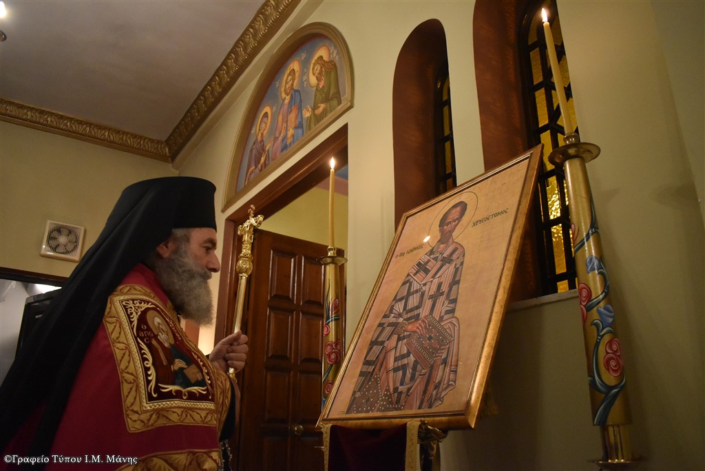 Εορτάστηκαν με τη δέουσα εκκλησιαστική τάξη τα ονομαστήρια του σεβ. Μητροπολίτη Μάνης κ. Χρυσοστόμου Γ΄, το διήμερο 12 και 13 Νοεμβρίου, τόσο με τον αρχιερατικό εσπερινό και την ομιλία του σεβασμιώτατου προς τους προσκληθέντες δασκάλους, όσο και με την πανηγυρική αρχιερατική Θεία Λειτουργία και το κήρυγμα με θέμα «Ο Ι. Χρυσόστομος ως ιεροκήρυκας, ως ιερουργός και ως ποιμένας».