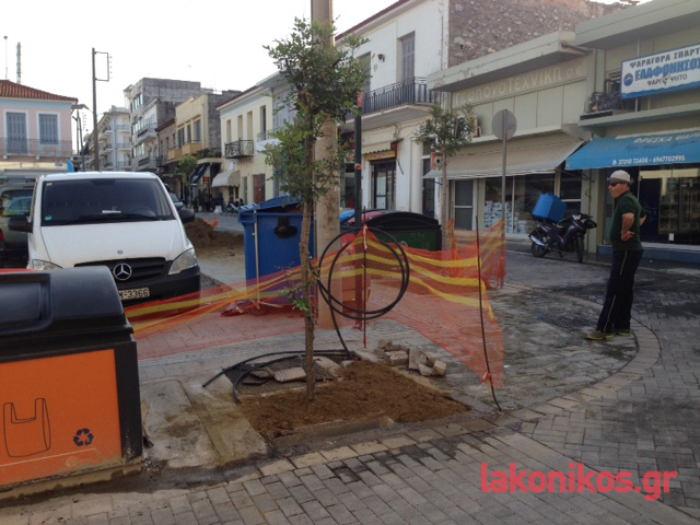 Εντωμεταξύ, μια εντεκάδα αδύναμων δενδρυλλίων φυτεύτηκε την Τετάρτη (27/11) στο δυτικό, άνω όριο της ανάπλασης τού Ανοιχτού Κέντρου Εμπορίου Σπάρτης, στη διασταύρωση των οδών Αγησιλάου και Βρασίδου. Το συνεργείο της αναδόχου έπιασε δουλειά κατά το μεσημέρι. Η φύτευση θα συνεχιστεί και την Πέμπτη (27/11), καθώς άλλα 12 δενδρύλλια περιμένουν να φυτευτούν στην οδό Βρασίδου. Έχουμε ξαναπεί ότι ο εργολάβος, μπορεί να εκτελεί εργασίες στο έργο, και μετά την απόφαση έκπτωσής του από αυτό, ενώ δεν αποξενώνεται από το αντικείμενο έως την οριστική απόφαση που θα παρθεί σε διοικητικό ή δικαστικό επίπεδο. Κατά την πάγια τακτική του, εκτελεί τις εργασίες τις οποίες του είχε ζητηθεί να εκτελέσει και δεν εκτέλεσε -σε ορισμένο χρονικό διάστημα-, θέλοντας να δείξει πως βούλησή του είναι η συνέχιση και ολοκλήρωση τού έργου…