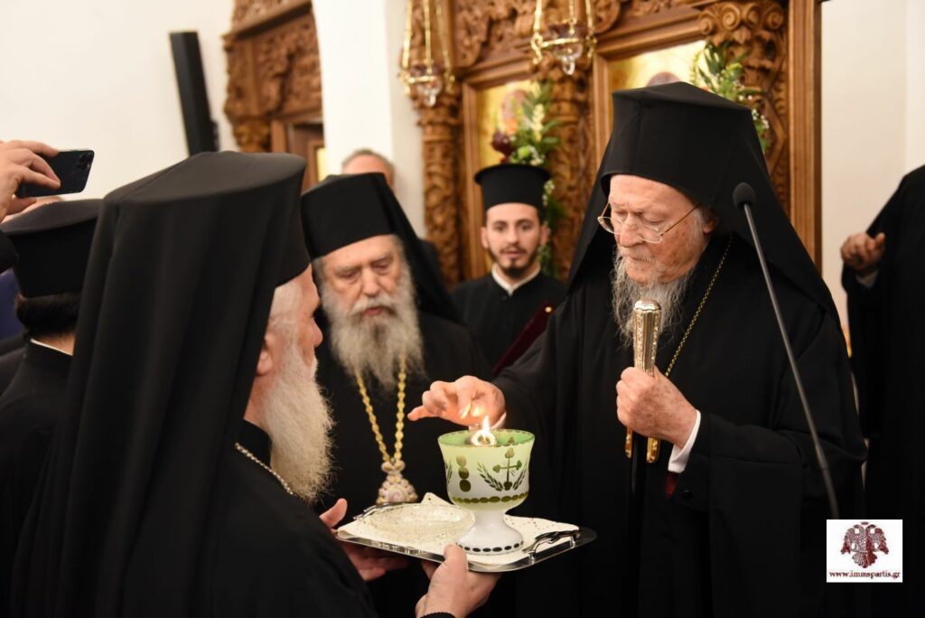 Ευχάριστη έκπληξη για τον Παναγιώτατο αποτέλεσε η παρουσία μαθητών και μαθητριών από το Γεράκι, που τον είχαν επισκεφθεί πρόσφατα στο Φανάρι, στο πλαίσιο εκπαιδευτικής εκδρομής. Τα παιδιά, συνοδεία εκπαιδευτικών και γονέων, θέλησαν να δεχθούν ξανά την ευλογία τού Προκαθήμενου της Ορθοδοξίας, προσφέροντάς του μάλιστα συμβολικά δώρα από τον ιστορικό τόπο τους.