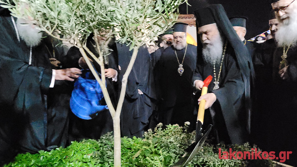 Ακολούθως, στον προαύλιο χώρο τού ναού, αποκαλύφθηκε μαρμάρινη πλάκα, ως ανάμνηση της ιστορικής επίσκεψης και ευλογίας τού Οικουμενικού Πατριάρχη. Η επίσκεψη του Παναγιωτάτου στον νεόδμητο ναό επισφραγίστηκε με συμβολική φύτευση ενός δενδρυλλίου ελαίας.