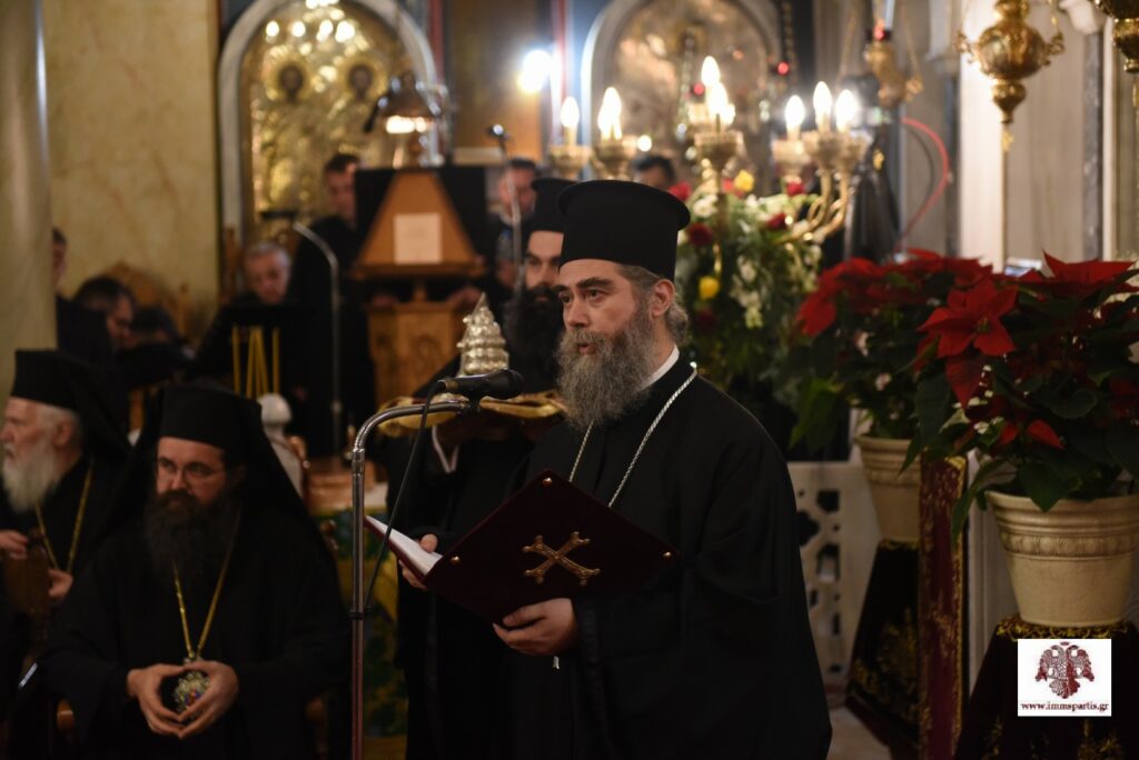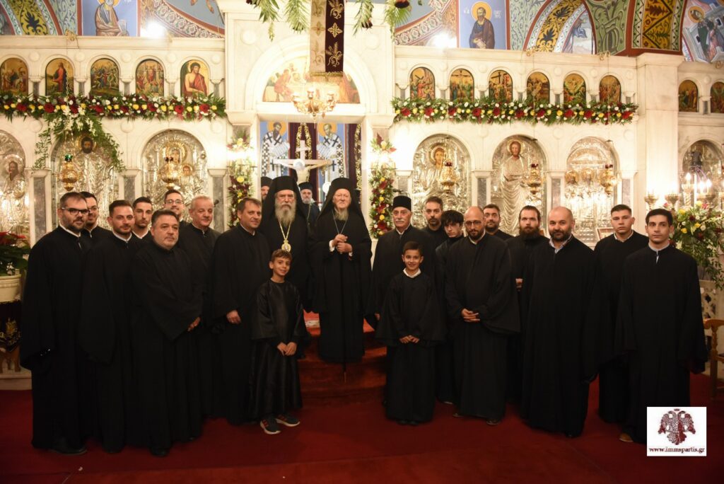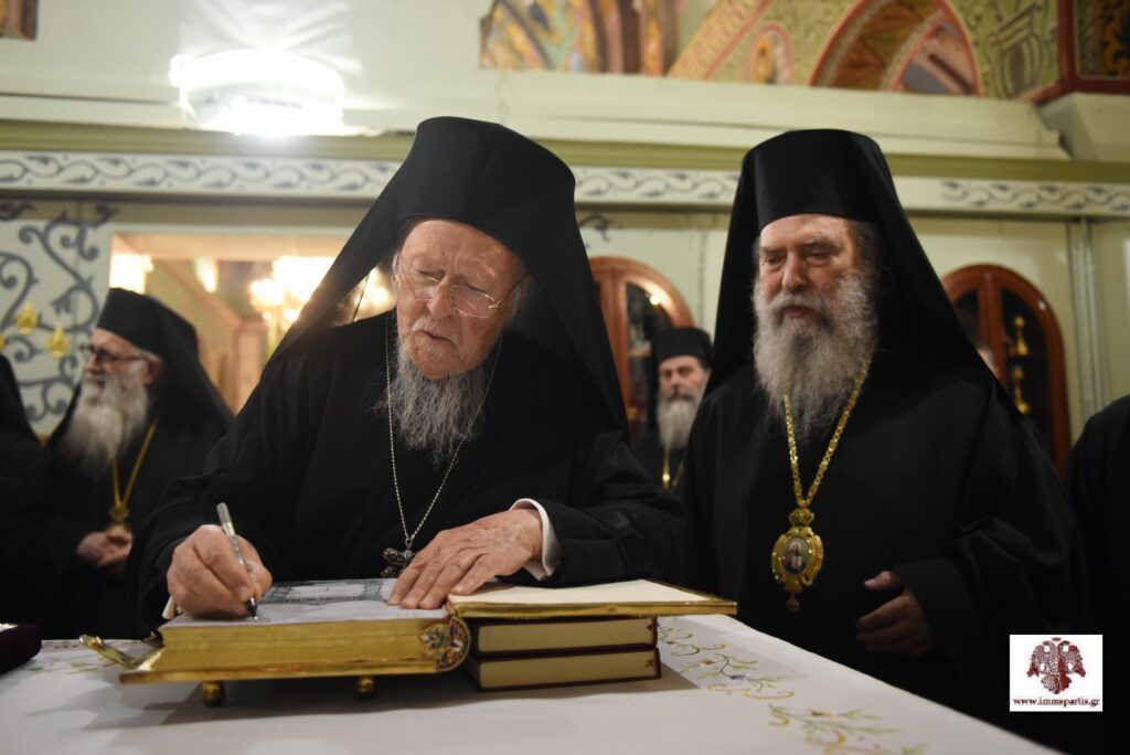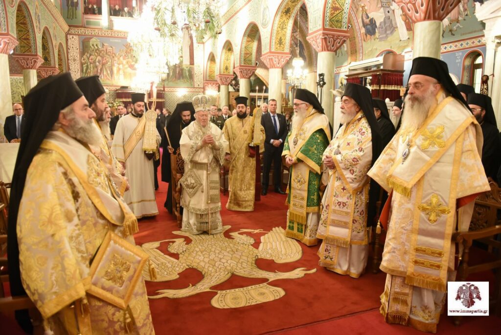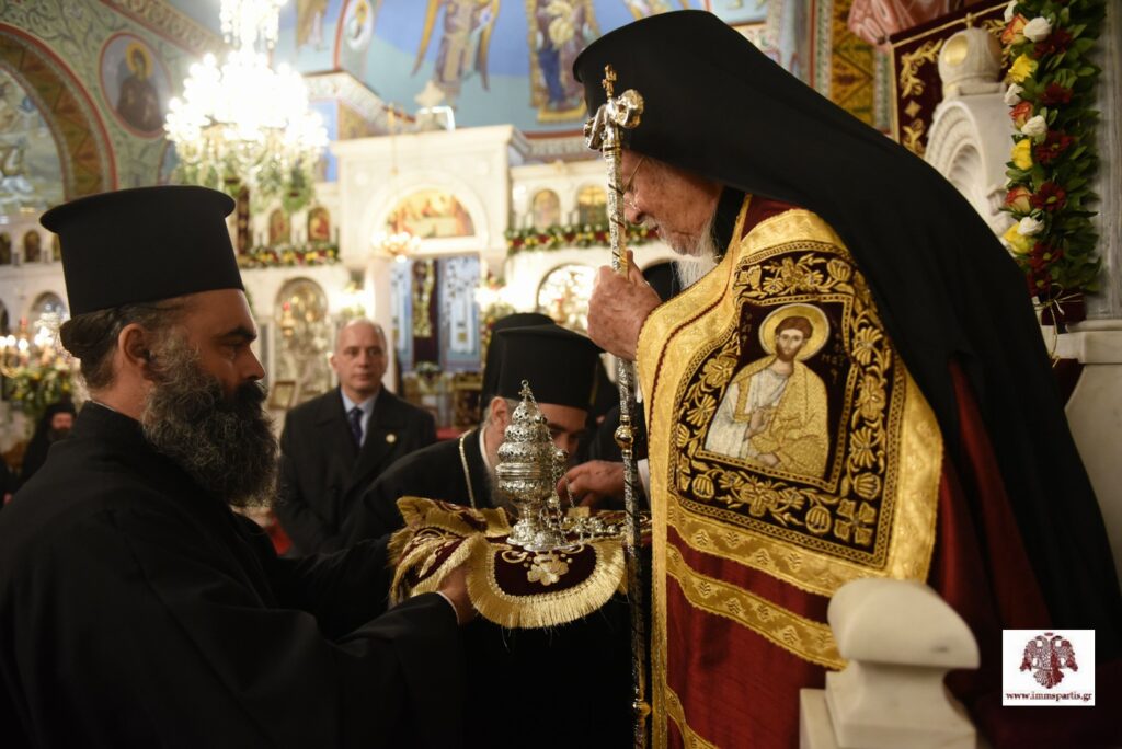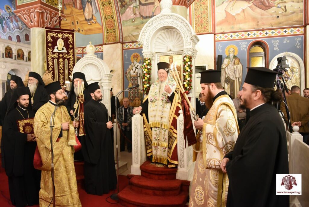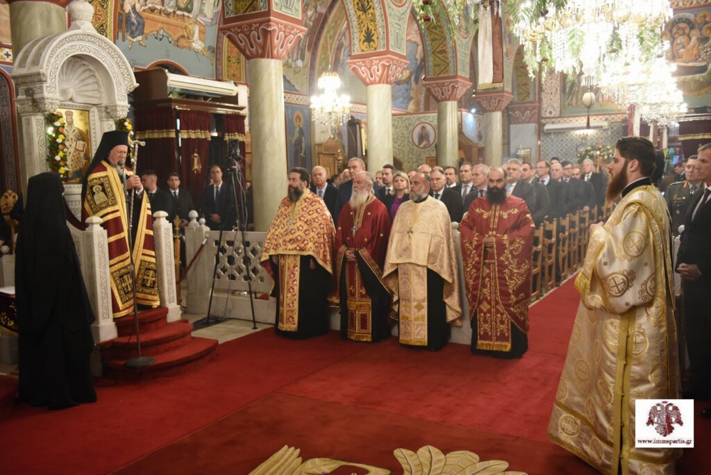 Τον Προκαθήμενο της Ορθοδοξίας προσφώνησε αρχικά ο σεβασμιώτατος Μητροπολίτης κ. Ευστάθιος. Ο σεπτός ποιμενάρχης ανέφερε, μεταξύ άλλων, ότι «σύσσωμος κλήρος και λαός υποδέχονται με αισθήματα απύθμενης χαράς, συγκίνησης, σεβασμού, τιμής και αγάπης τον Πρωτεύθυνο της Ορθοδοξίας και θεματοφύλακα των παραδόσεων του Γένους μας». Ο σεβασμιώτατος έκανε ιδιαίτερη αναφορά στην πολυσχιδή και χαρισματική προσωπικότητα του Παναγιωτάτου, αναφέροντας χαρακτηριστικά: «Σέ μιά ἐποχή κοσμογονικῶν ἐξελίξεων καί πολύμορφης καί πολυώνυμης σύγχυσης καί κρίσης, ἀπό τήν ὁποία δυστυχῶς δέ διαφαίνεται ἄμεση διέξοδος, ἡ Πρωτόθρονη Ἐκκλησία εὐλογήθηκε νά ἔχει στήν Κορυφή της Πατριάρχη μέ διεθνές κύρος καί μέ ἐπίγνωση τῆς κομβικῆς ἀποστολῆς του στή σύγχρονη συγκυρία. Οἱ θέσεις καί οἱ δραστηριότητές Σας σέ φλέγοντα θέματα τοῦ σύγχρονου βίου, ὅπως τό φυσικό περιβάλλον, ἡ τρομοκρατία, ὁ πόλεμος, ἀπηχοῦν τή βαθιά ποιμαντική Σας ἀγωνία καί τήν ἀνταπόκρισή Σας στήν ἱστορική εὐθύνη τῆς Ἐκκλησίας τοῦ Χριστοῦ».