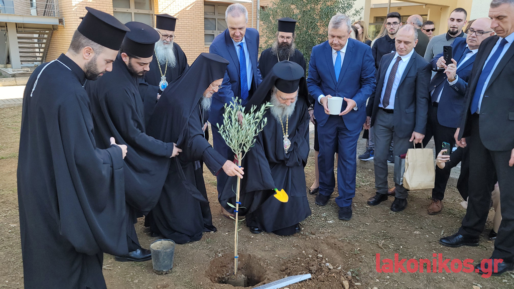Μόλις ο Παναγιώτατος αφίχθη στις εγκαταστάσεις τού Πανεπιστημίου, οδηγήθηκε στον προαύλιο χώρο, όπου προέβη σε συμβολική φύτευση δενδρυλλίου ελαίας μαζί με τον σεβασμιώτατο Μητροπολίτη κ. Ευστάθιο.