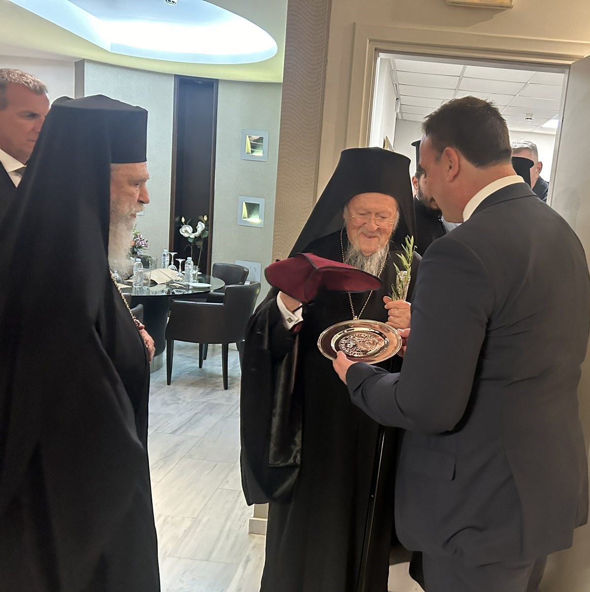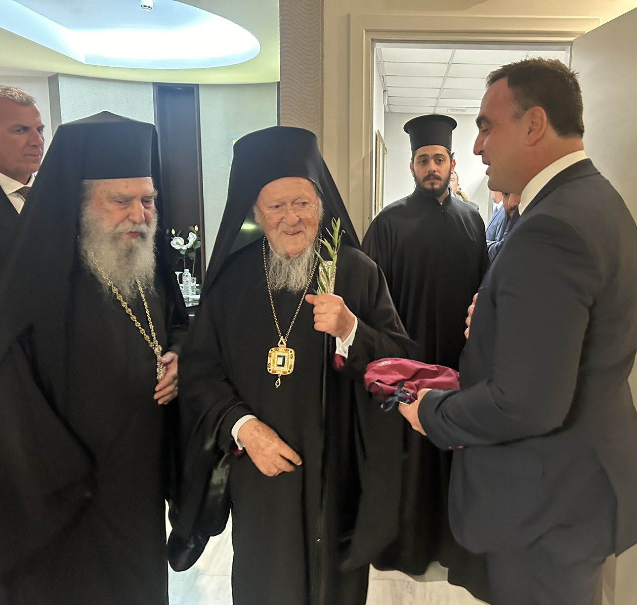 Στο πλαίσιο της ιστορικής επίσκεψής του στη Σπάρτη, αλλά και της ανακήρυξής του ως Επίτιμου Δημότη Σπάρτης στην αίθουσα «Λακώνων ποιητών Γιάννη Ρίτσου & Νικηφόρου Βρεττάκου» τού Διοικητηρίου, ο Παναγιώτατος Οικουμενικός Πατριάρχης κκ Βαρθολομαίος συναντήθηκε και με τον αντιπεριφερειάρχη Λακωνίας, Θεόδωρο Βερούτη.