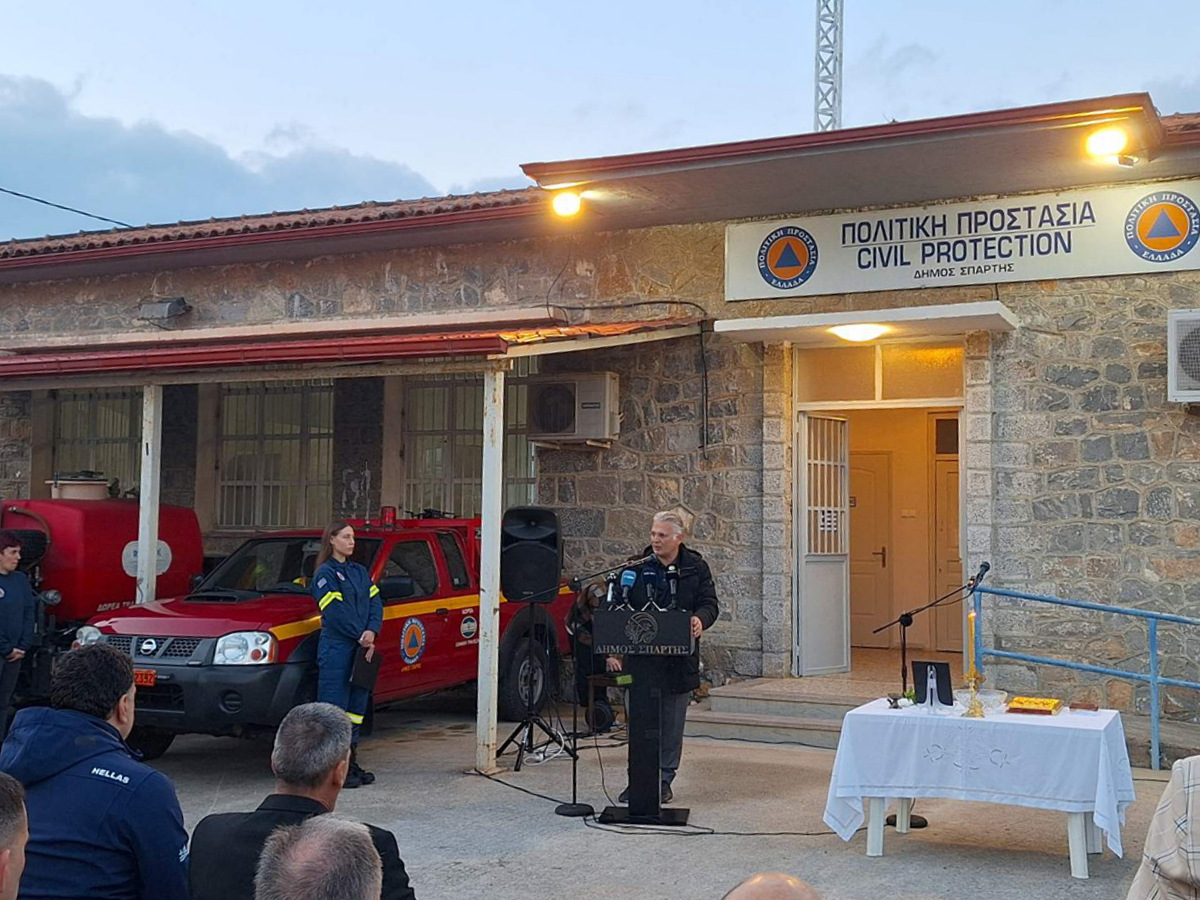 Το νέο Επιχειρησιακό Κέντρο Πολιτικής Προστασίας τού Δήμου Σπάρτης στο Συκαράκι εγκαινιάστηκε, ως γνωστόν, την Παρασκευή (29/11), παρουσία μεταξύ άλλων του υπουργού Κλιματικής Κρίσης και Πολιτικής Προστασίας, Βασίλη Κικίλια.