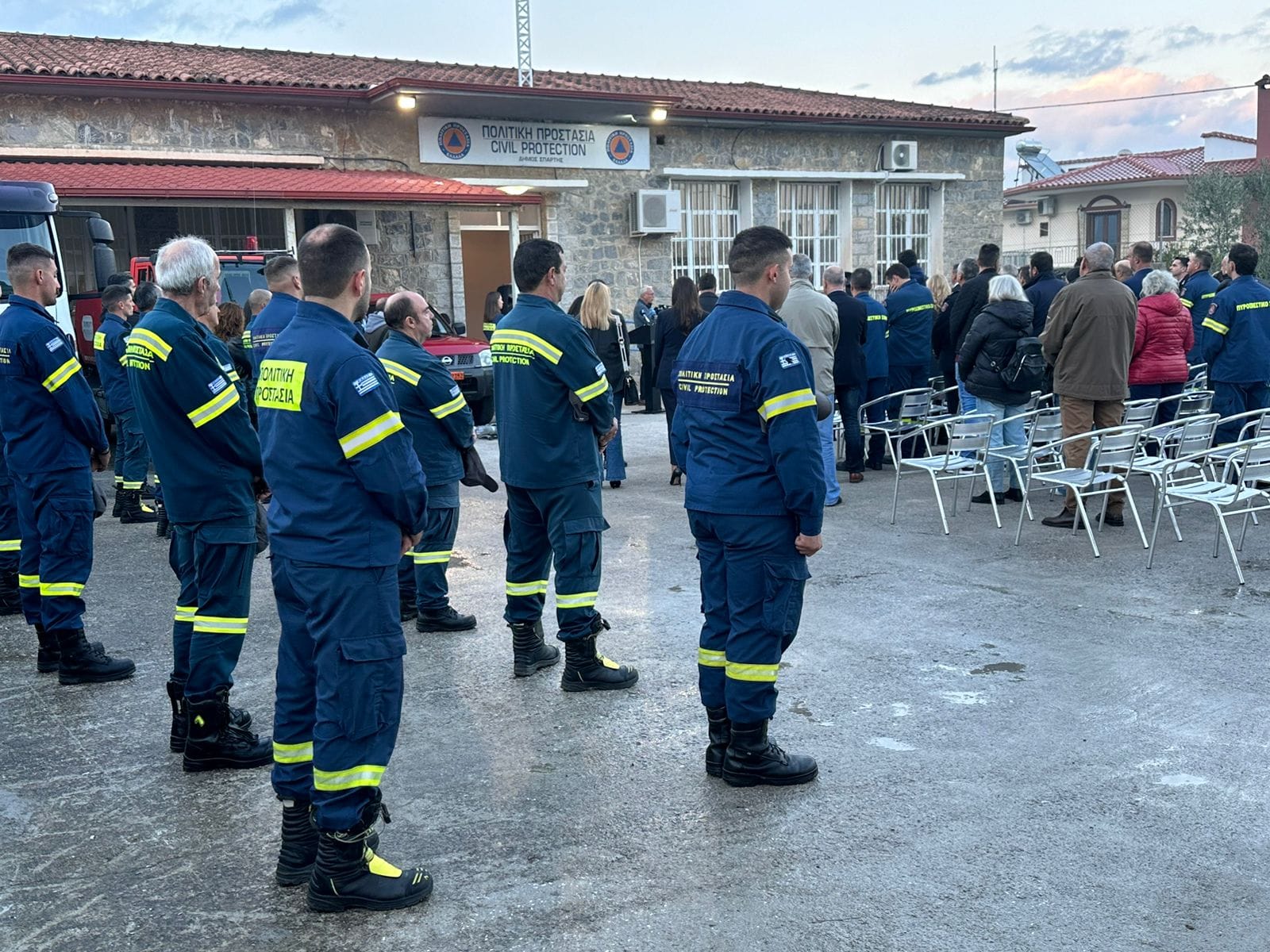 Ο αντιδήμαρχος ευχαρίστησε τα μέλη τής Πολιτικής Προστασίας, «που με προσωπική εργασία αναβάθμισαν το παλιό αυτό σχολείο και τις Τεχνικές Υπηρεσίες τού δήμου, που διέθεσαν προσωπικό και υλικά για την ολοκλήρωσή του». Στάθηκε ακόμα στις προκλήσεις της κλιματικής κρίσης, τονίζοντας πως ο δήμος δίνει βαρύνουσα σημασία στην κατάλληλη οργάνωση και αντιμετώπιση φαινομένων. Έθιξε και τις ιδιαιτερότητες της περιοχής, όσον αφορά την αντιπυρική περίοδο. «Το νέο δόγμα “πάσει δυνάμει”, που εισηγηθήκατε κ. υπουργέ, αποδίδει. Το αποτέλεσμα είναι, φέτος, στην περιοχή μας να μην θρηνούμε, τουλάχιστον για καμένες εκτάσεις. Και είμαι σίγουρος ότι μια ευρεία κινητοποίηση για την καταστολή, στο τέλος τής ημέρας, κοστίζει λιγότερο, από μια ανεξέλεγκτη πυρκαγιά ημερών». Απένειμε συγχαρητήρια στην Πυροσβεστική Υπηρεσία και τη νεοσύστατη ΕΜΟΔΕ, που αποδείχθηκε «πόσο πολύτιμο εργαλείο είναι στις δύσκολες και δύσβατες πυρκαγιές στην περιοχή μας». Ακόμα, ευχαρίστησε τις 2 εθελοντικές ομάδες τής Λακωνίας (Ραδιοερασιτέχνες και Ελληνική Ομάδα Διάσωσης), τις νεοσύστατες ομάδες Ξηροκαμπίου, «για τον ζήλο στην κατάσβεση πυρκαγιών» και 4X4, «για την πυρασφάλεια σε δύσκολες ημέρες», καθώς και τους προέδρους χωριών και τις ομάδες εθελοντών που συστήνουν τοπικά.