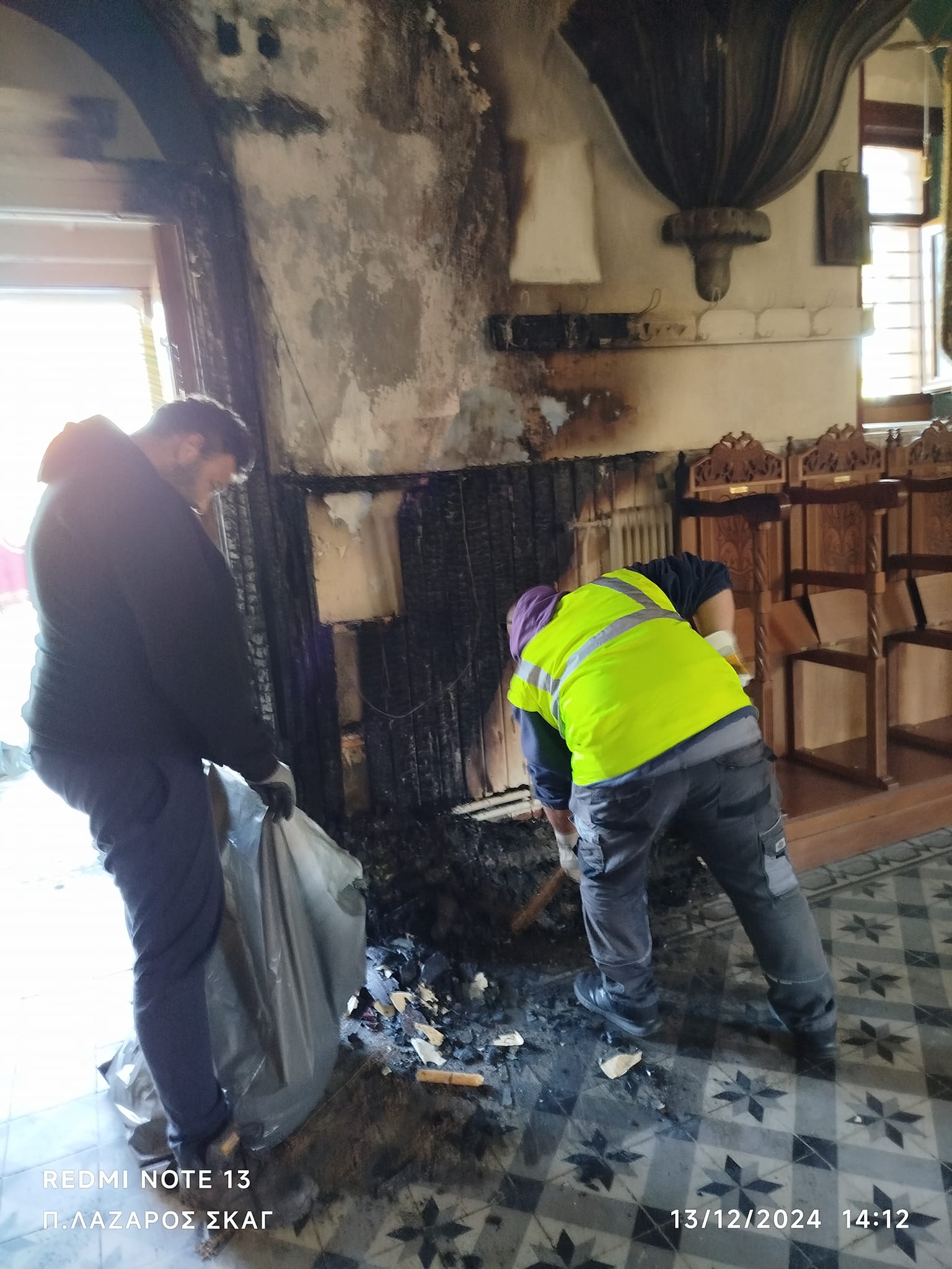 Το συμβάν αντιμετωπίστηκε άμεσα, δεν επεκτάθηκε σε παρακείμενους χώρους, η ιστορική εκκλησία σώθηκε. Η εικόνα του Αγίου και το τέμπλο έμειναν αλώβητα. Ο ναός όμως πληγώθηκε. Οι υλικές ζημιές και η όλη αποκατάσταση που θα χρειαστεί υπολογίζονται στο ποσό των 13.000 ευρώ.