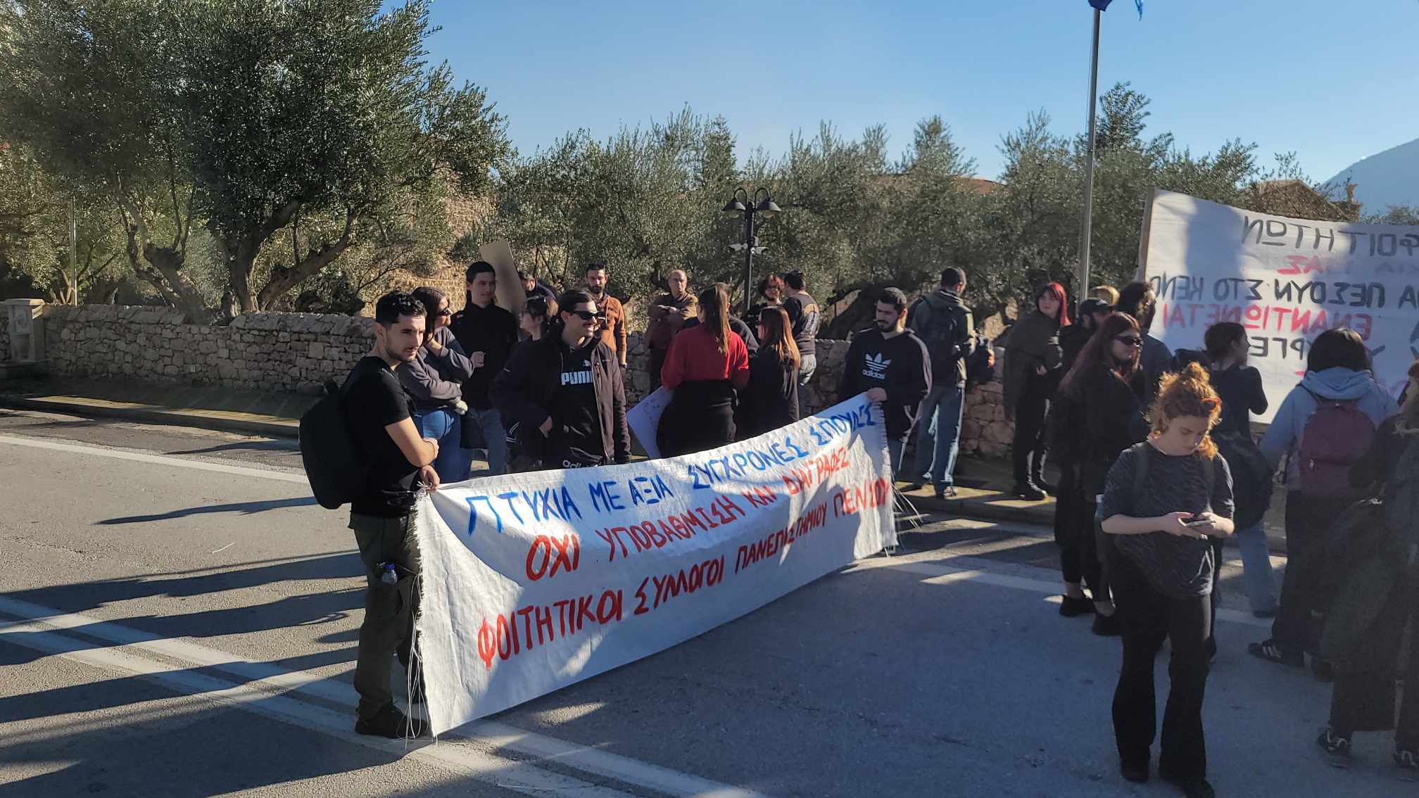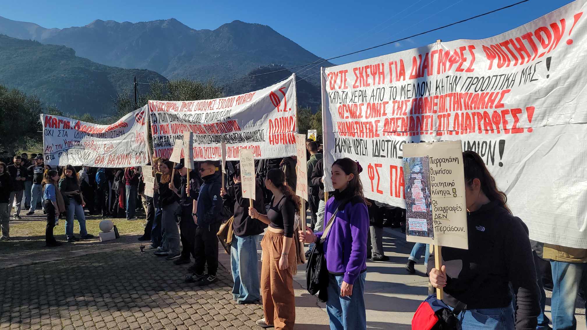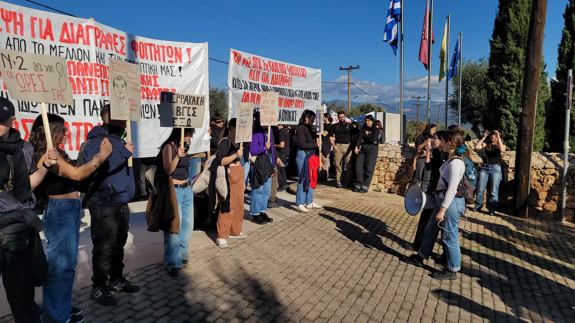 Εν μέσω διαμαρτυριών συζητούνται αυτή την ώρα τα συμπεράσματα της 107ης Συνόδου Πρυτάνεων, παρουσία του υπουργού Παιδεία,ς Κυριάκου Πιερρακάκη, στον Μυστρά. Φοιτητικοί σύλλογοι από όλη την χώρα, Σπάρτη, Αθήνα, Θεσσαλονίκη, Πάτρα, Βόλο, Φλώρινα, Κρήτη, συγκεντρώθηκαν έξω από τον χώρο που πραγματοποιείται η Σύνοδος, και με πανό και συνθήματα ζητούν αλλαγή του πλαίσιου για τις διαγραφές, ενίσχυση της δωρεάν Δημόσιας Παιδείας και αναβάθμιση των σπουδών τους.
