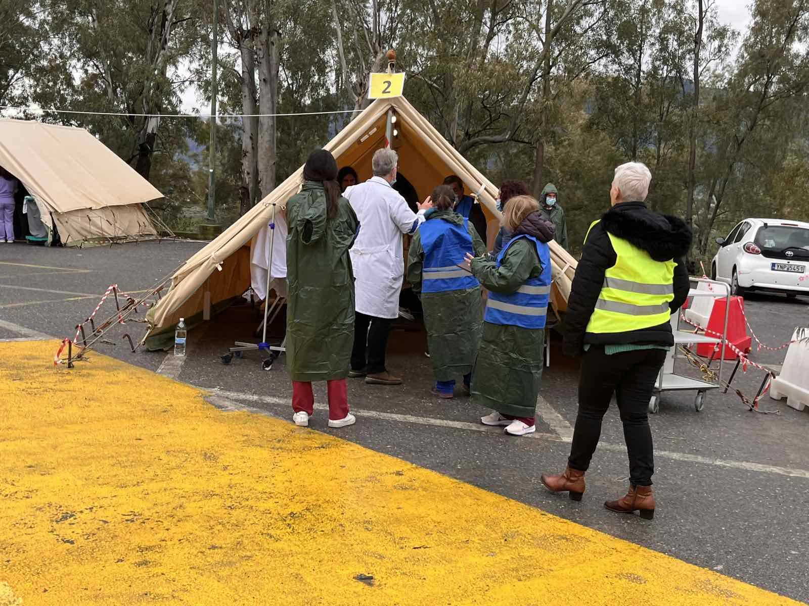 - Το ΕΚΑΒ Τομέα Σπάρτης, με μεταφορά περιστατικών από το νοσοκομείο στον υπαίθριο καταυλισμό.