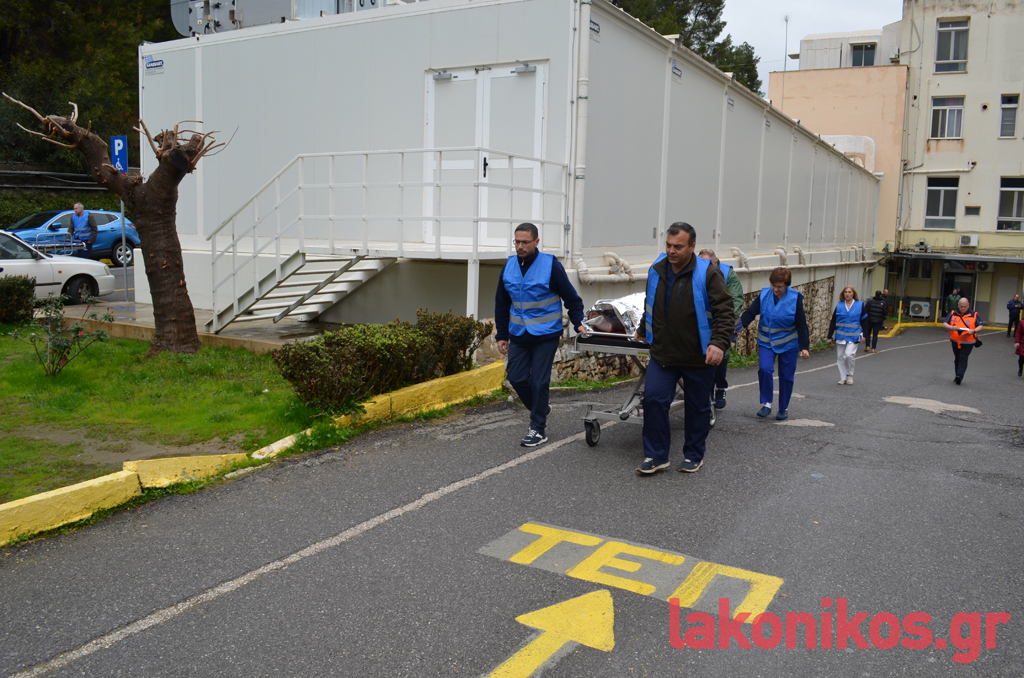 Ευρεία άσκηση επιχειρησιακής ετοιμότητας στο Γενικό Νοσοκομείο Λακωνίας – Νοσηλευτική Μονάδα Σπάρτης, που «μέτρησε» την αντίδραση όλων των εμπλεκομένων, έναντι ενδεχόμενων έκτακτων κι επειγουσών περιστάσεων, πραγματοποιήθηκε Δευτέρα (13/1).