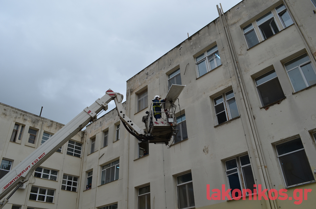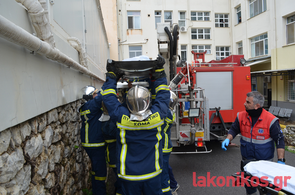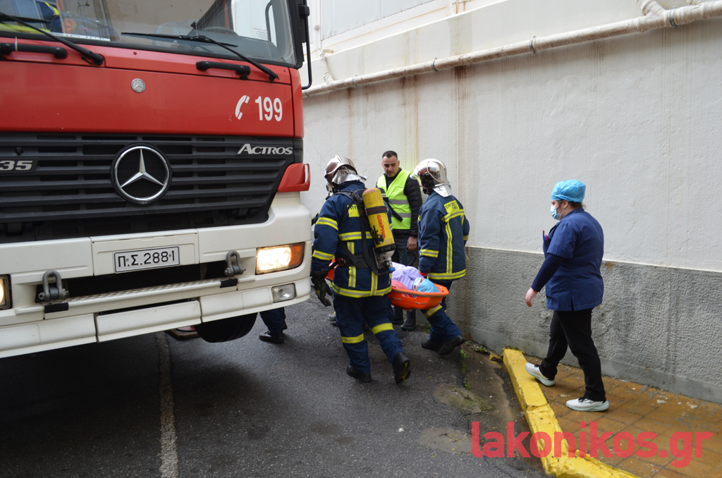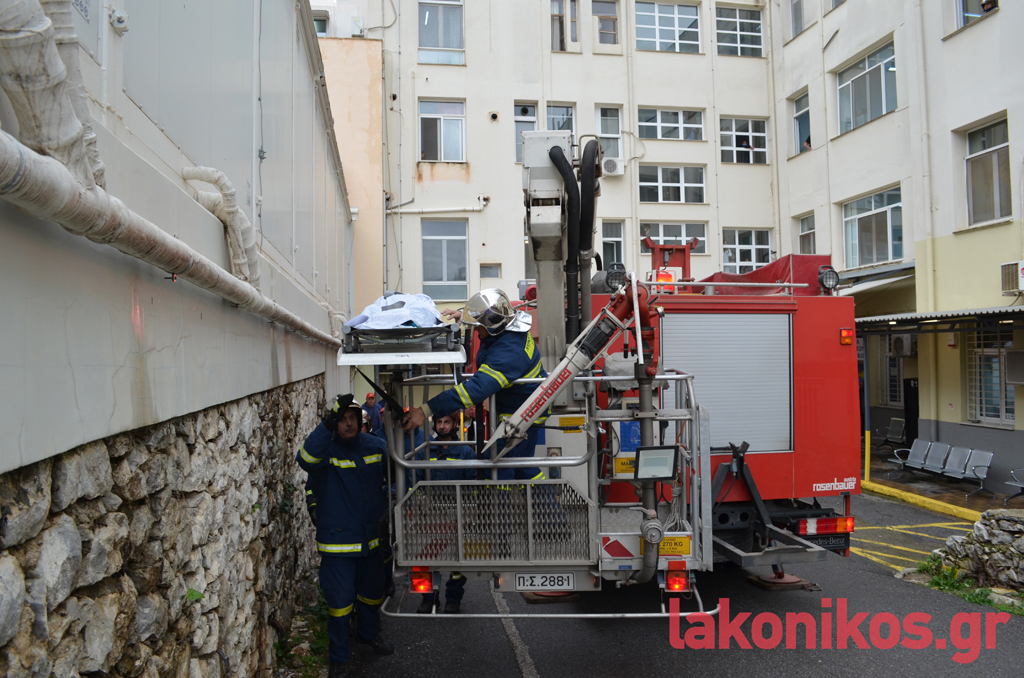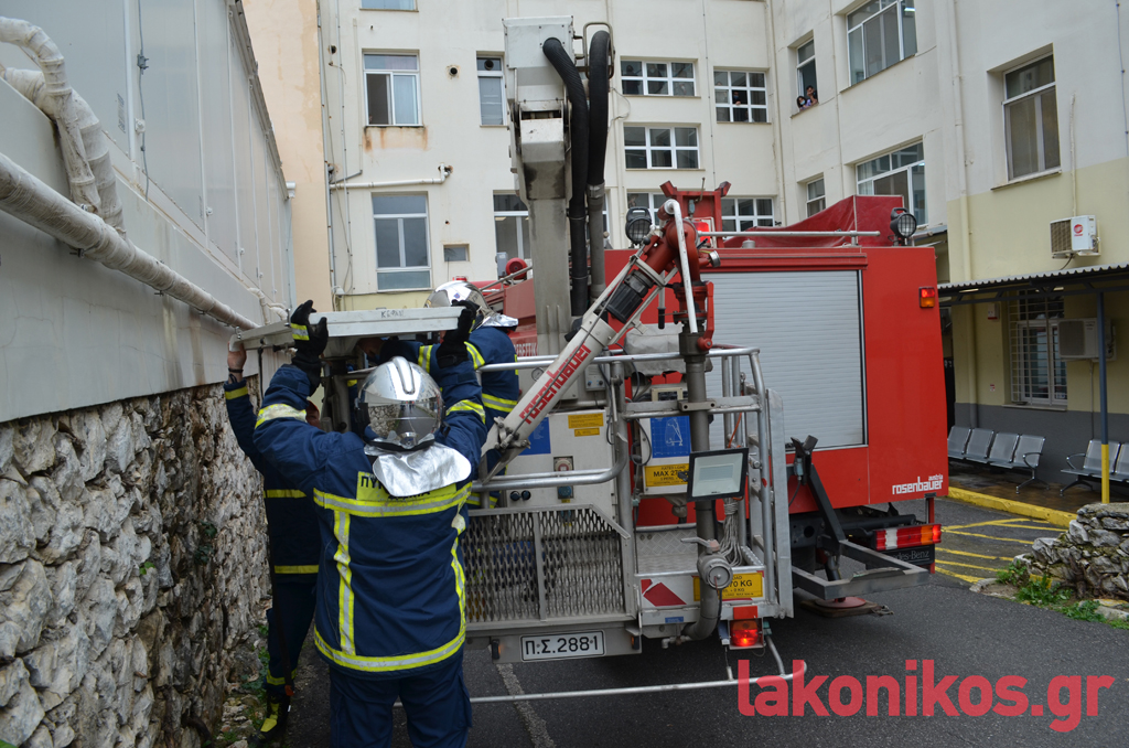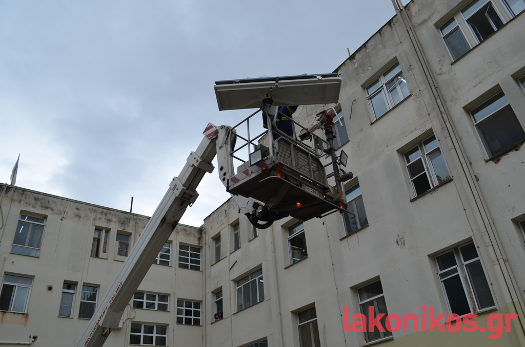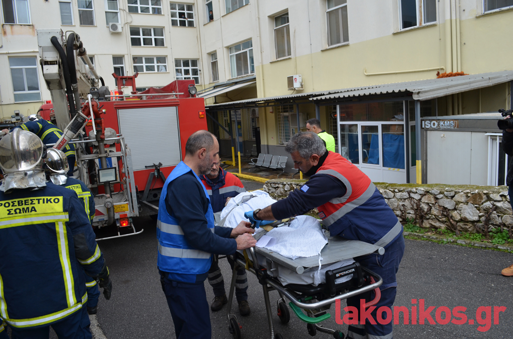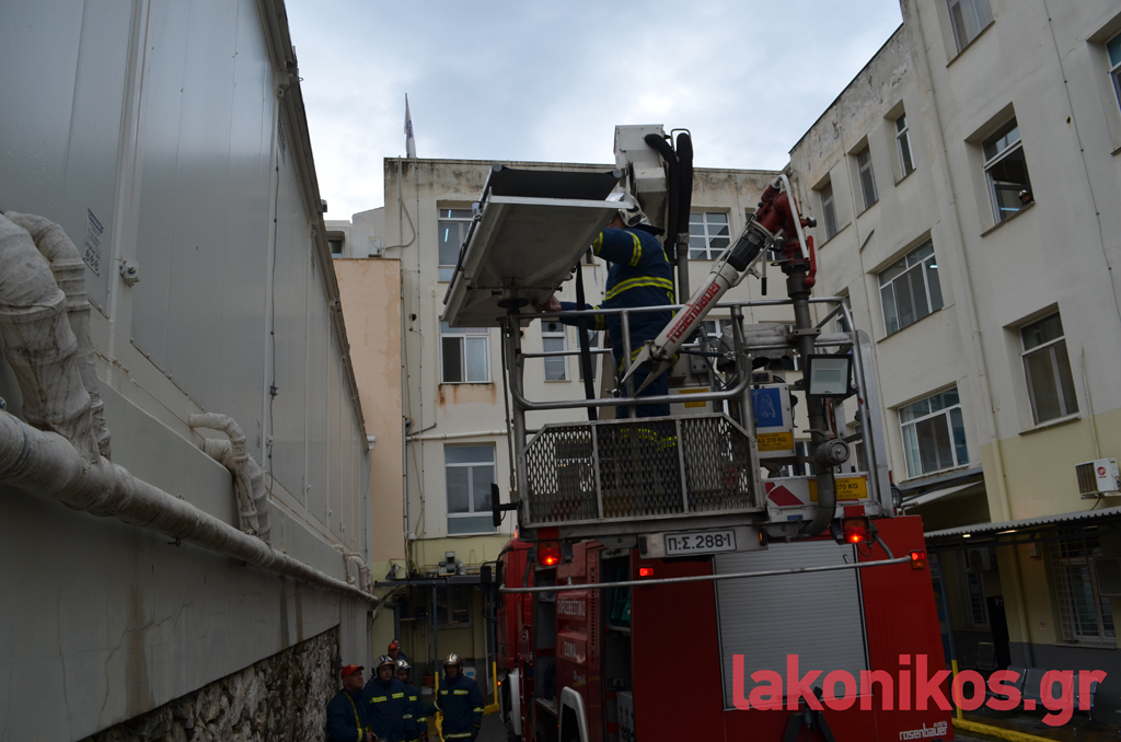 - Η Πυροσβεστική Υπηρεσία Σπάρτης, με συμμετοχή της στον απεγκλωβισμό ασθενών και εργαζομένων του νοσοκομείου, επιχειρώντας και με καλαθοφόρο όχημα στο πεδίο.