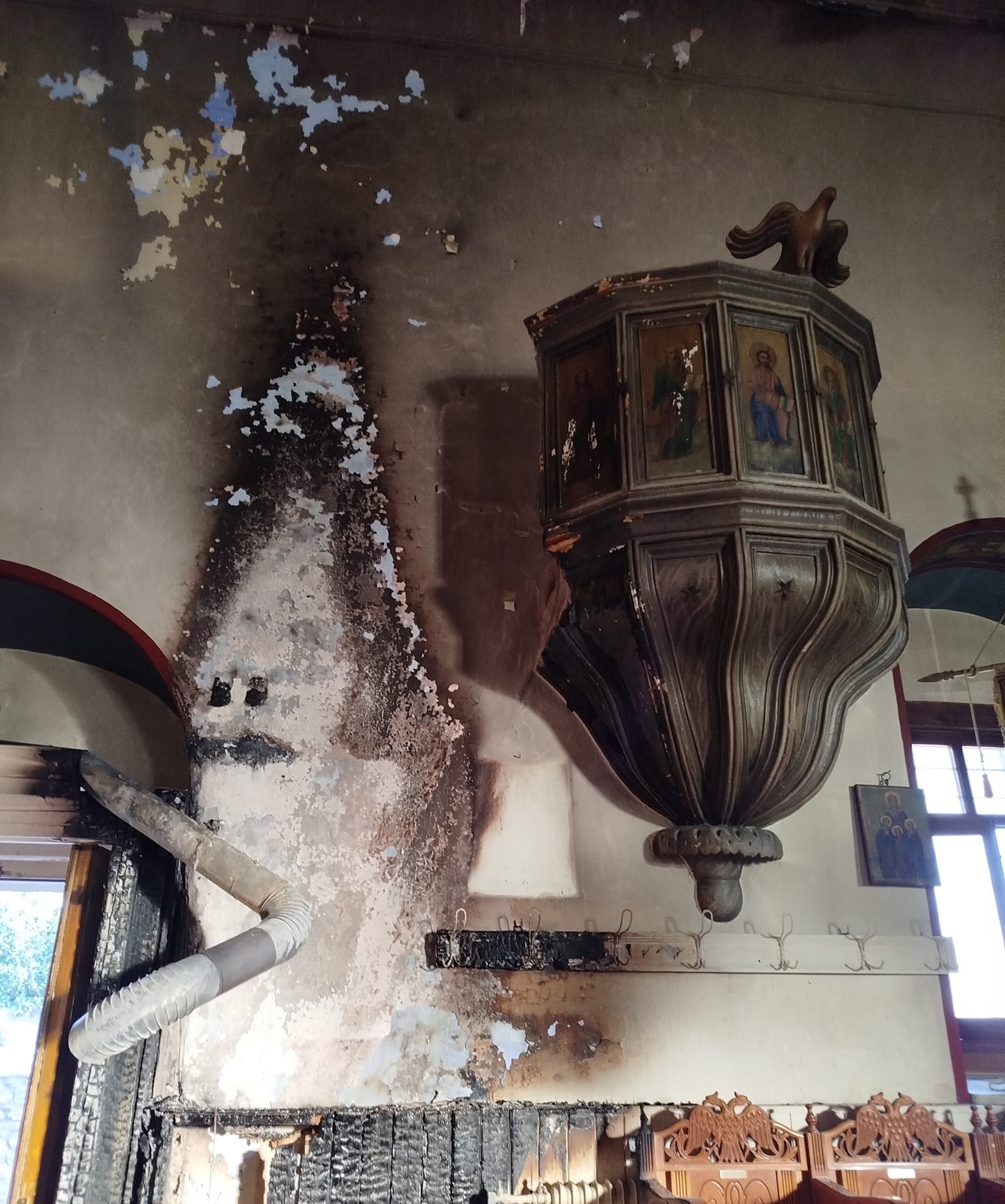 Υπενθυμίζεται ότι η εκκλησία υπέστη σημαντικές υλικές ζημιές, από πυρκαγιά που ξέσπασε ανήμερα της πανήγυρής της, το βράδυ της 12ης Δεκεμβρίου 2024. Όπως ανέφερε σε δημοσίευμά του ο «ΛΤ», το συμβάν αντιμετωπίστηκε άμεσα και αποσοβήθηκαν τα χειρότερα για το εκκλησιαστικό μνημείο. Η εικόνα του Αγίου Σπυρίδωνος και το τέμπλο έμειναν αλώβητα, εντούτοις ο εσωτερικός -κυρίως- χώρος του ναού «λαβώθηκε». Οι απαιτούμενες εργασίες αποκατάστασης αποτιμήθηκαν τότε σε ποσό άνω των 10.000 ευρώ.