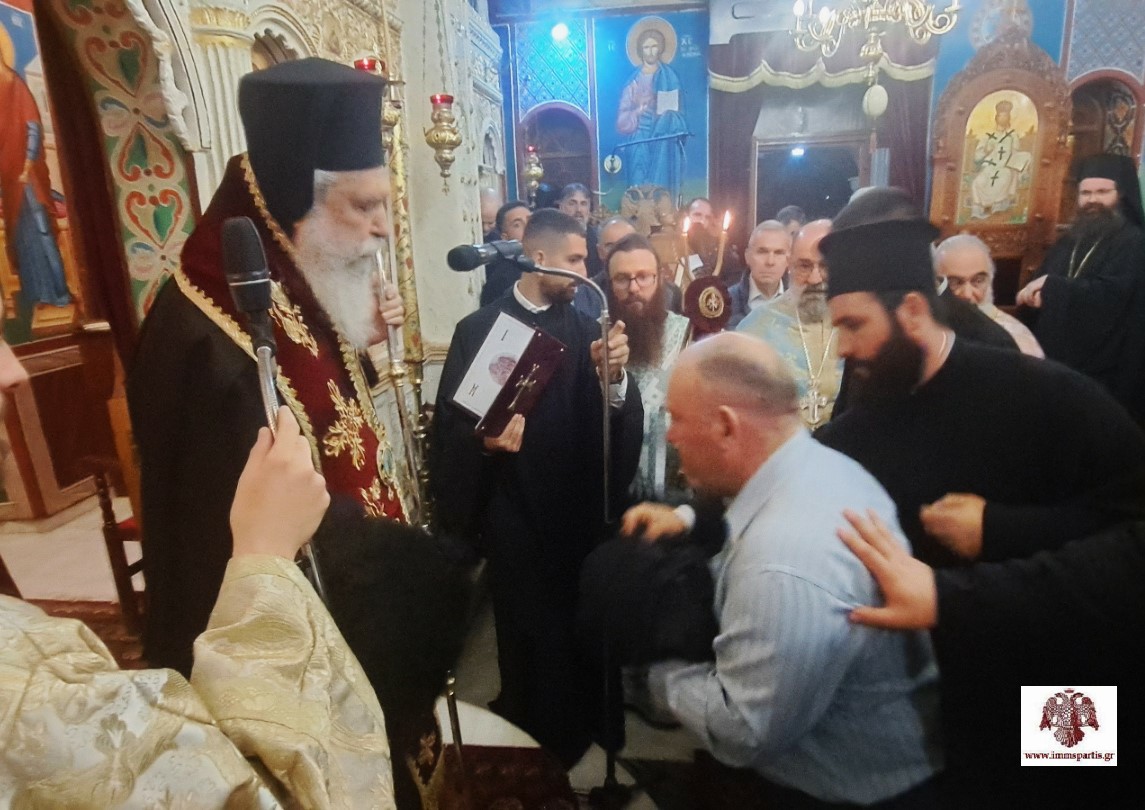Αμέσως μετά την κουρά, ο Μητροπολίτης κ. Ευστάθιος χειροθέτησε Αναγνώστη τον ιεροψάλτη της Συκέας και του προσκυνήματος του Αγίου Νεκταρίου, κ. Γεώργιο Κοτσώνα, ο οποίος είναι κατ’ επάγγελμα αγρότης. Ο σεβασμιώτατος αναφέρθηκε στη σημασία του συγκεκριμένου αξιώματος του κατώτερου κλήρου, επαίνεσε τον νέο Αναγνώστη για το ήθος και τη συνεπή προσφορά του στην Ενορία Συκέας και του ευχήθηκε υγεία, χαρά και κατά Θεόν προκοπή.