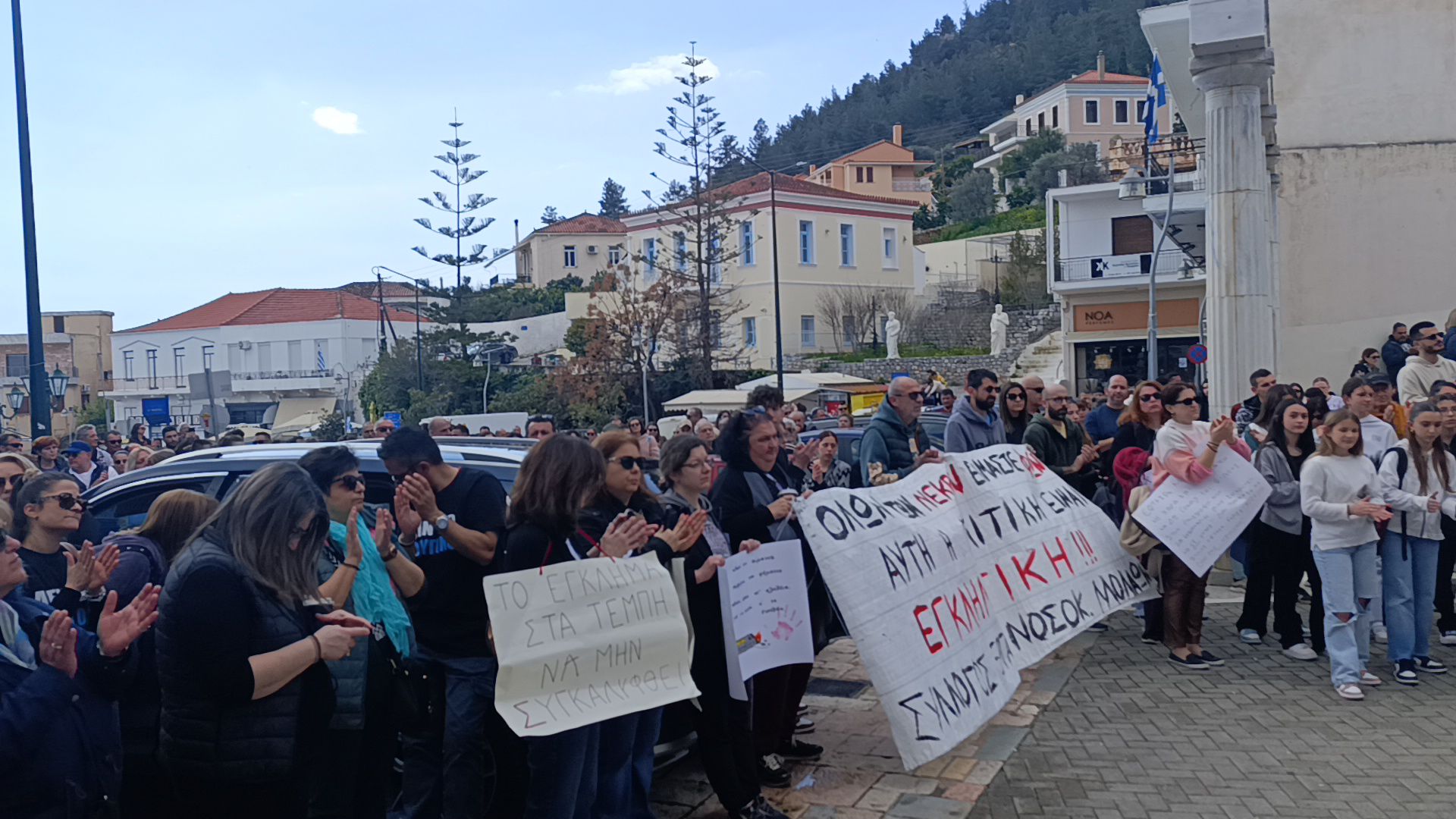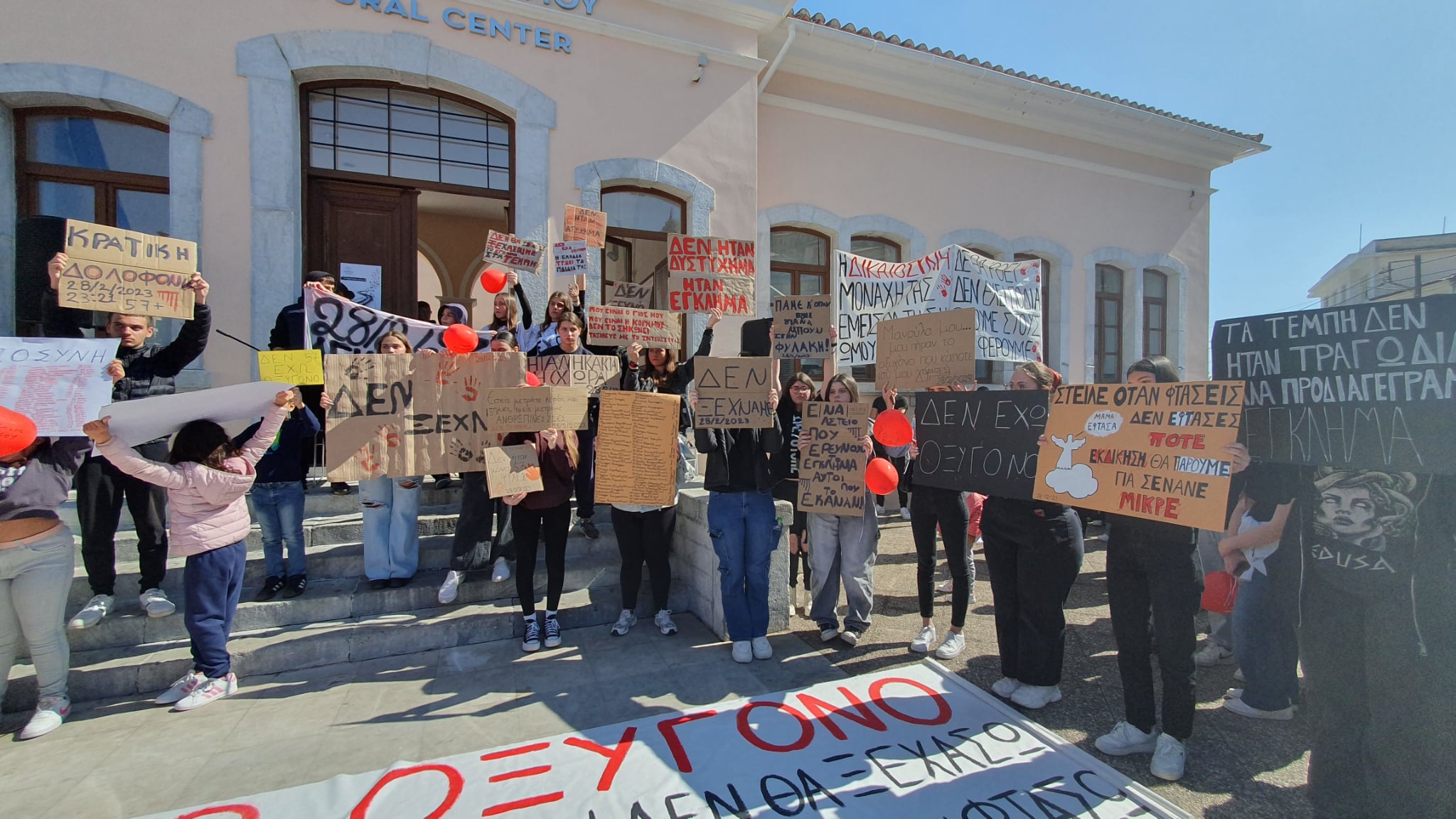 Ένα ανθρώπινο ποτάμι ξεχύθηκε στους δρόμους σε περιοχές του Δ. Μονεμβασίας, όπως οι Μολάοι, η Μονεμβασιά και η Νεάπολη, σε μια ιδιαίτερα συγκινησιακή κι έντονα φορτισμένη ατμόσφαιρα. Άτομα όλων των ηλικιών, με πρωταγωνιστές τους νέους, συγκεντρώθηκαν σε πλατείες και κεντρικούς δρόμους, εκφράζοντας τη συμπαράστασή τους στους οικείους των θυμάτων και ζητώντας απόδοση ευθυνών στους υπαίτιους. Με κεντρικό σύνθημα «δεν έχω οξυγόνο», αλλά και «δεν σας ξεχνάμε», οι συμμετέχοντες ένωσαν τις σκέψεις και τα συναισθήματά τους, με τις οικογένειες των θυμάτων, αλλά και τους εκατοντάδες χιλιάδες πολίτες που την ίδια ώρα διαδήλωναν σε όλη τη χώρα. Μάλιστα, στη Μονεμβασιά οι πολίτες κινήθηκαν σε πορεία από τον νέο οικισμό έως την καστροπολιτεία.