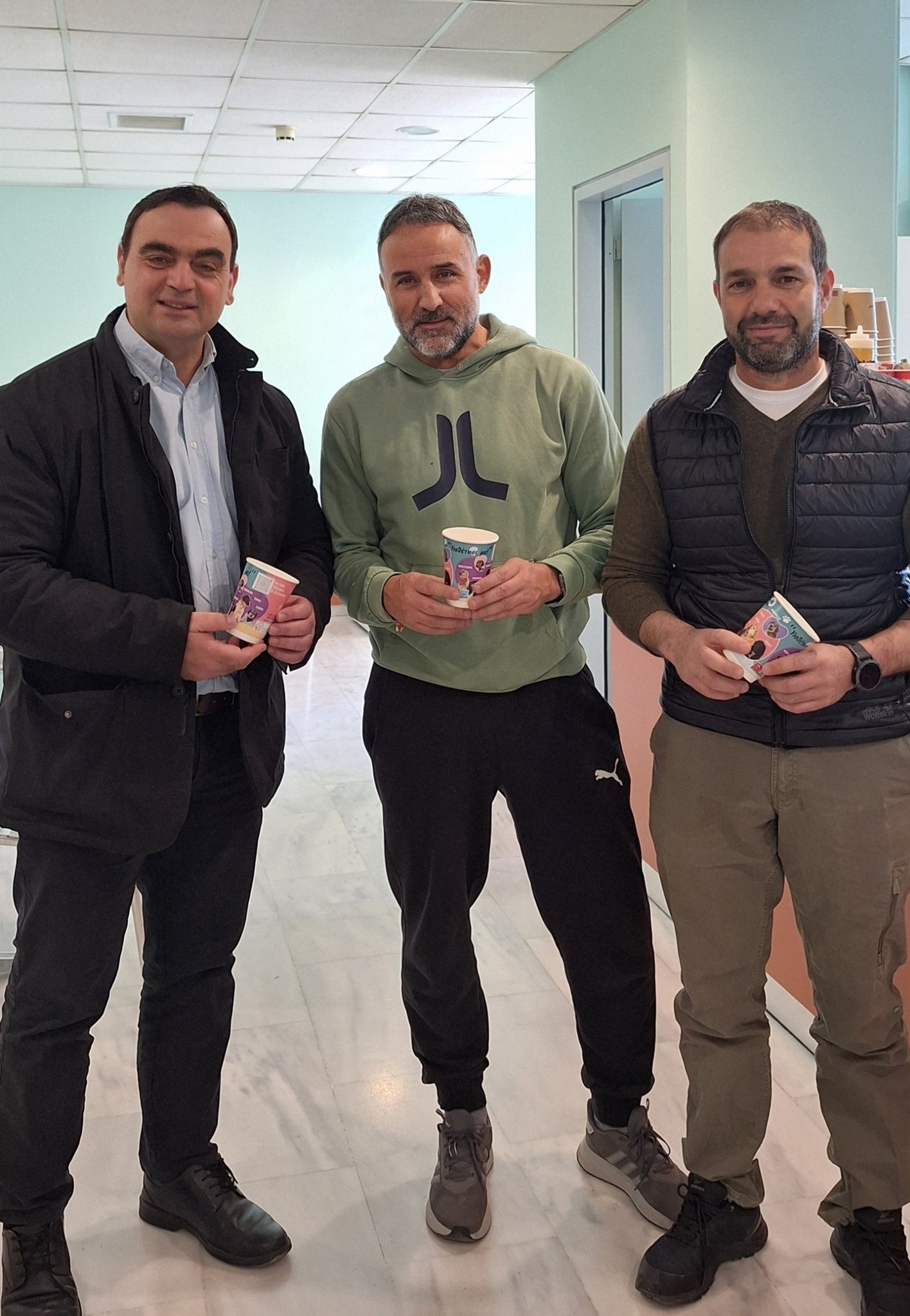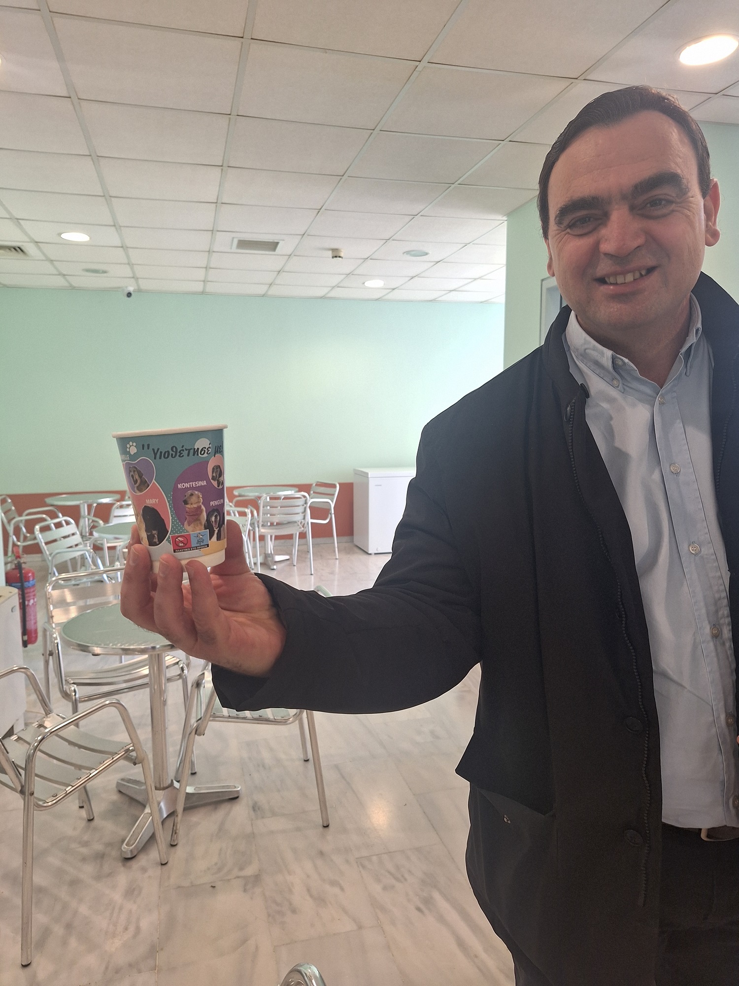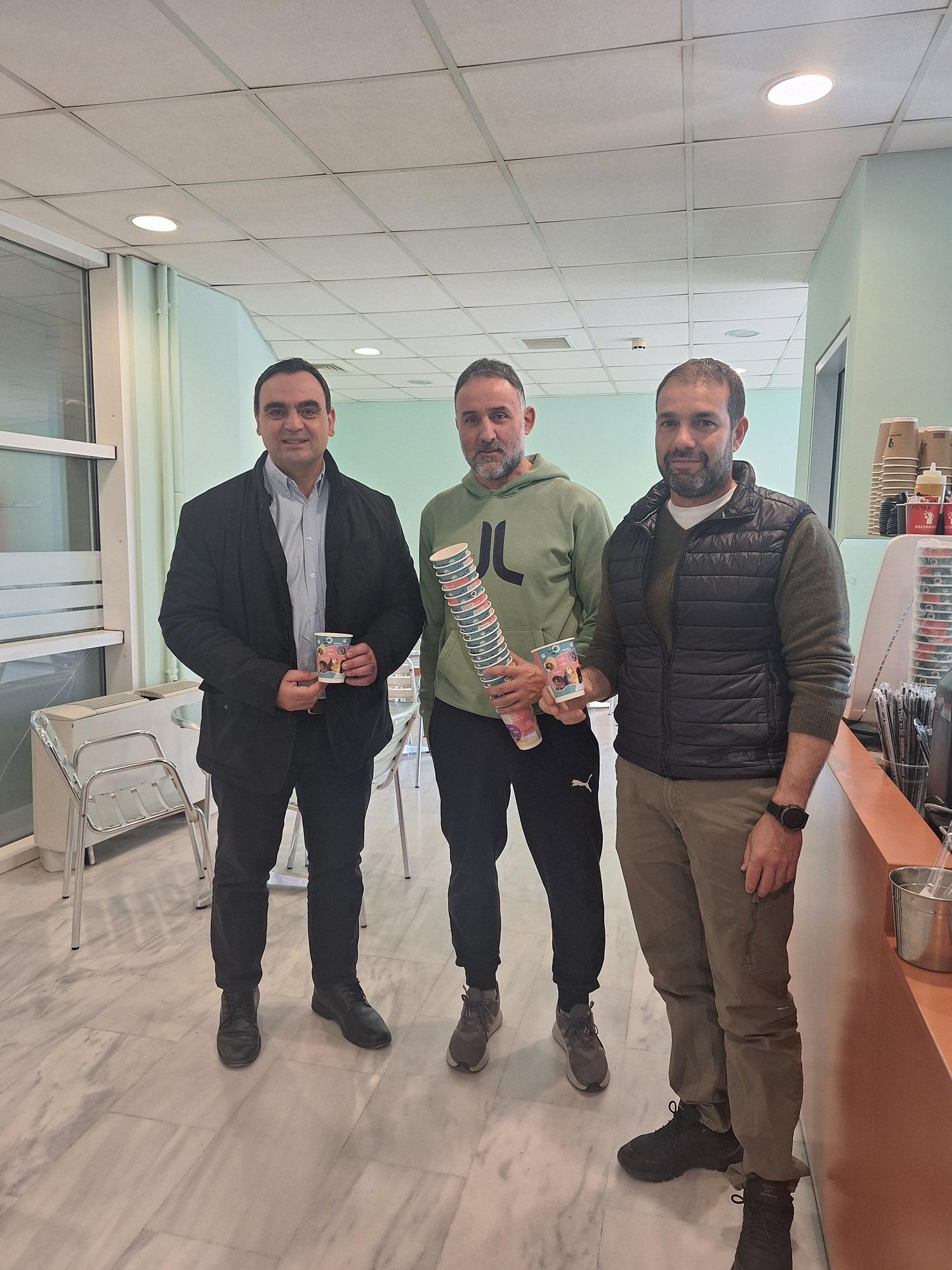 Ανοίγοντας τη «βεντάλια» της δράσης, από την Πέμπτη (13/3), τα χάρτινα κύπελλα διατίθενται και στο κυλικείο του Διοικητηρίου Λακωνίας. Συγκεκριμένα, ο αντιδήμαρχος -μεταξύ άλλων- Διαχείρισης Αδέσποτων Ζώων, Δημοσθένης Κακούρος και ο εντεταλμένος σύμβουλος Διαχείρισης Αδέσποτων Ζώων, Παναγιώτης Καρούνος, επισκέφθηκαν τον αντιπεριφερειάρχη Λακωνίας, Θοδωρή Βερούτη. Οι δύο εκπρόσωποι του Δ. Σπάρτης παρέδωσαν τα χάρτινα ποτηράκια στον αντιπεριφερειάρχη και μαζί απαθανατίστηκαν χαμογελαστοί. «Οι υπάλληλοι και οι πολίτες που επισκέπτονται το κυλικείο, κρατούν στα χέρια τους κάτι παραπάνω από ένα ρόφημα. Κρατούν μια ιστορία, μια ψυχή που περιμένει να βρει ένα σπίτι, μια ζεστή αγκαλιά», παρατήρησε ο Π. Καρούνος και πρόσθεσε: «Αν ψάχνεις έναν αληθινό φίλο, ίσως είναι η στιγμή να δώσεις σε ένα αδέσποτο την ευκαιρία που του αξίζει».